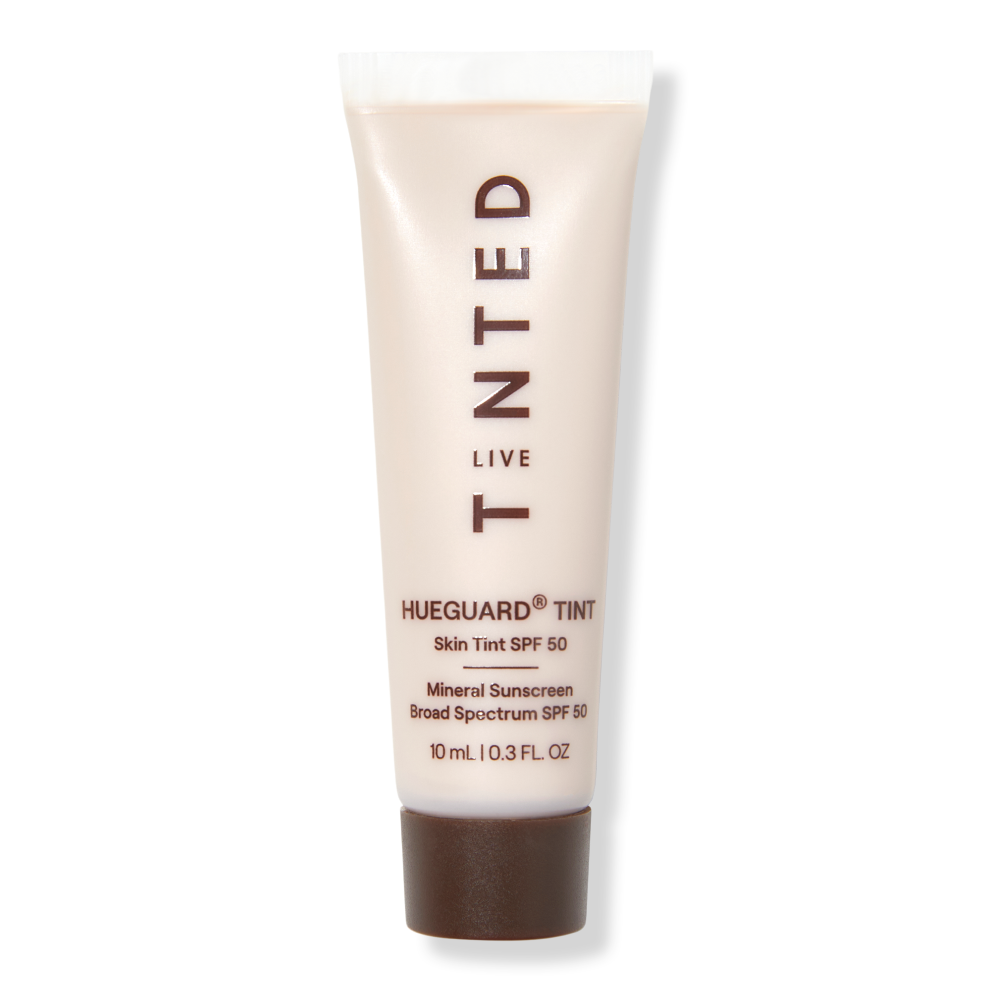 A lightweight, flexible coverage skin tint with No White Cast mineral SPF 50 that protects skin with all-day hydration and a radiant finish, Live Tinted's Hueguard Skin Tint SPF 50 Mineral Sunscreen Broad Spectrum has skincare actives to hydrate, protect, and smooth skin in one step.