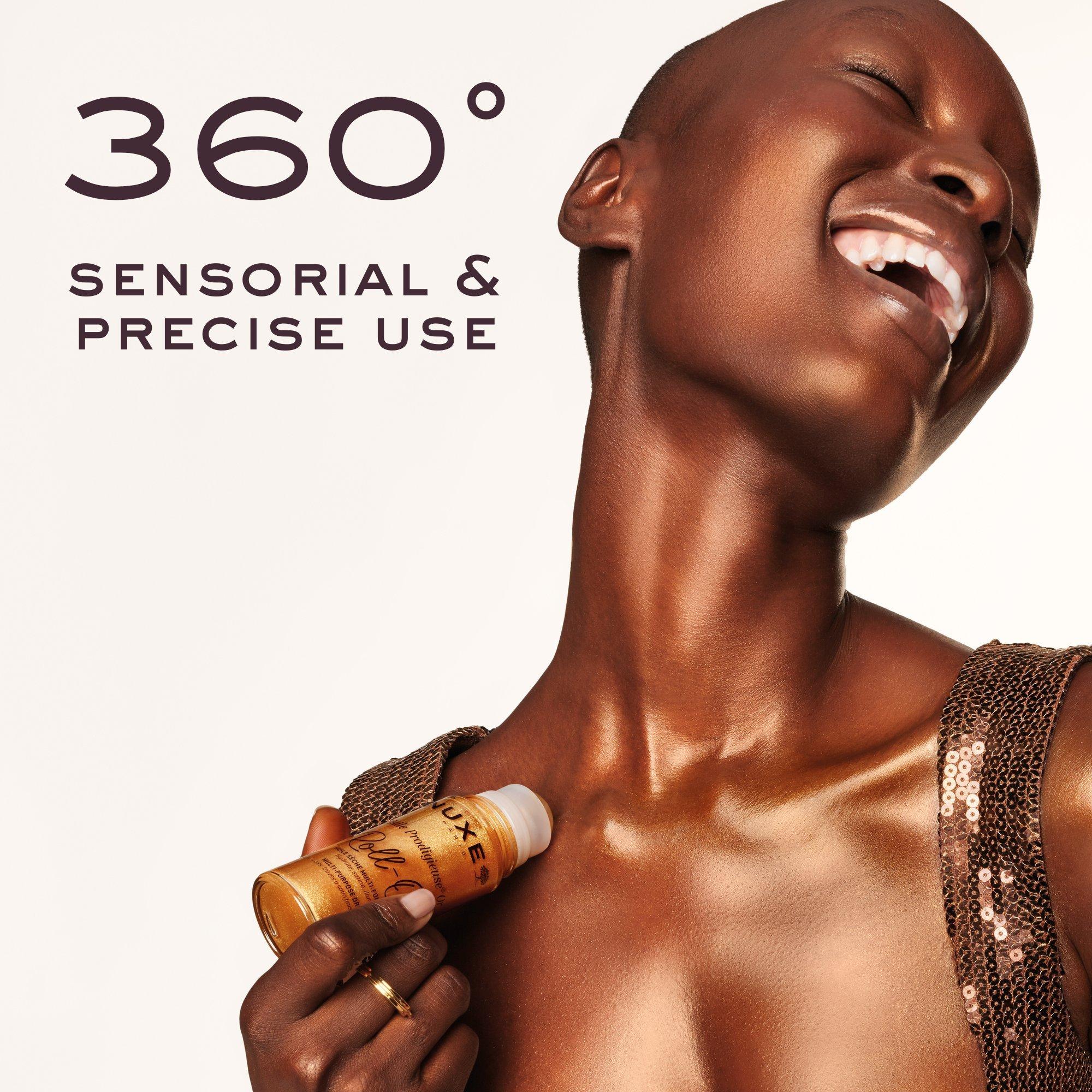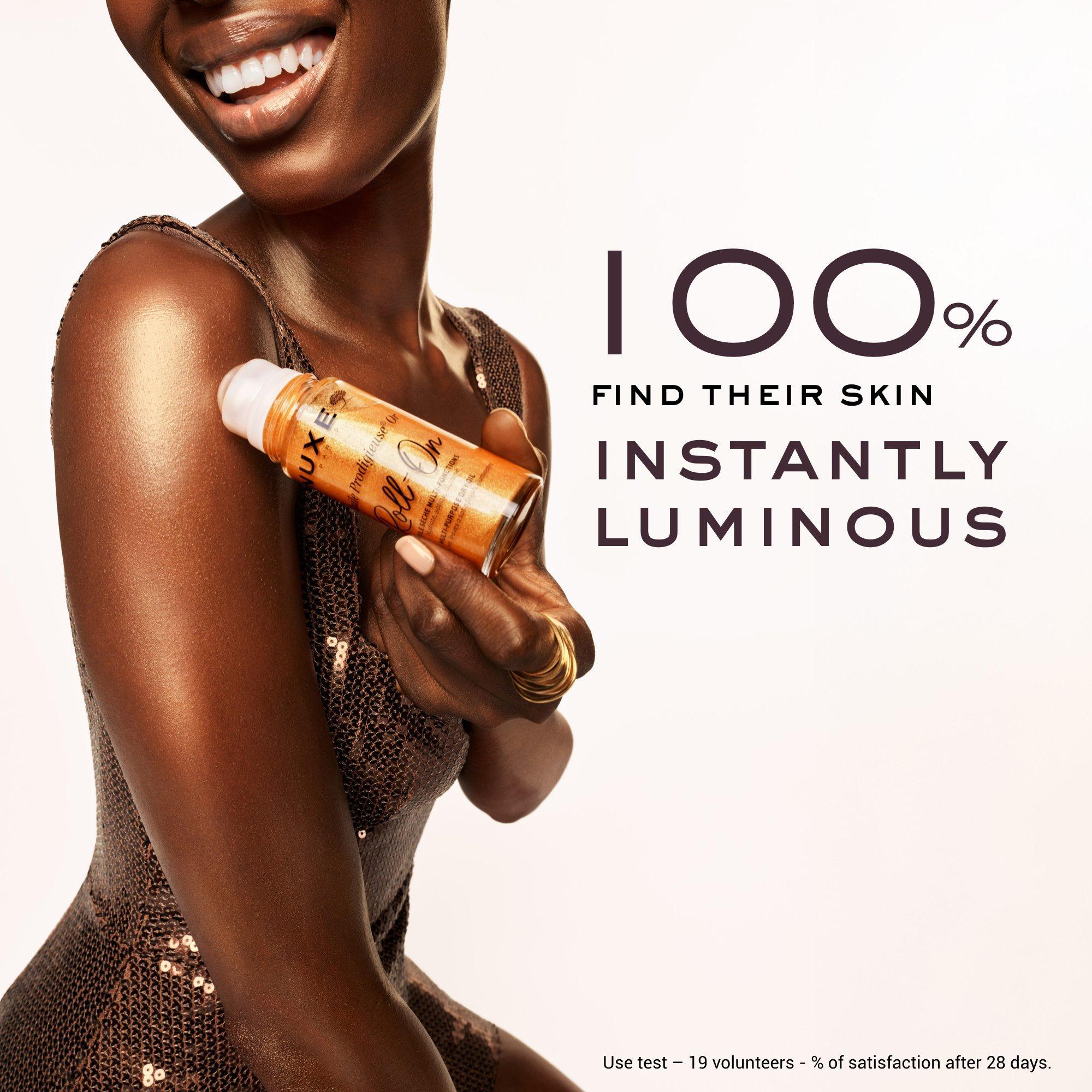 The shimmering dry oil in a new roll-on format, for a playful and quick use. Nourish, replenish and beautify the skin of face, body and your hair. 7 precious 100% botanical origin oils. The natural-origin golden pearly particles infuses all skin types and skin tones with an iridescent glow.