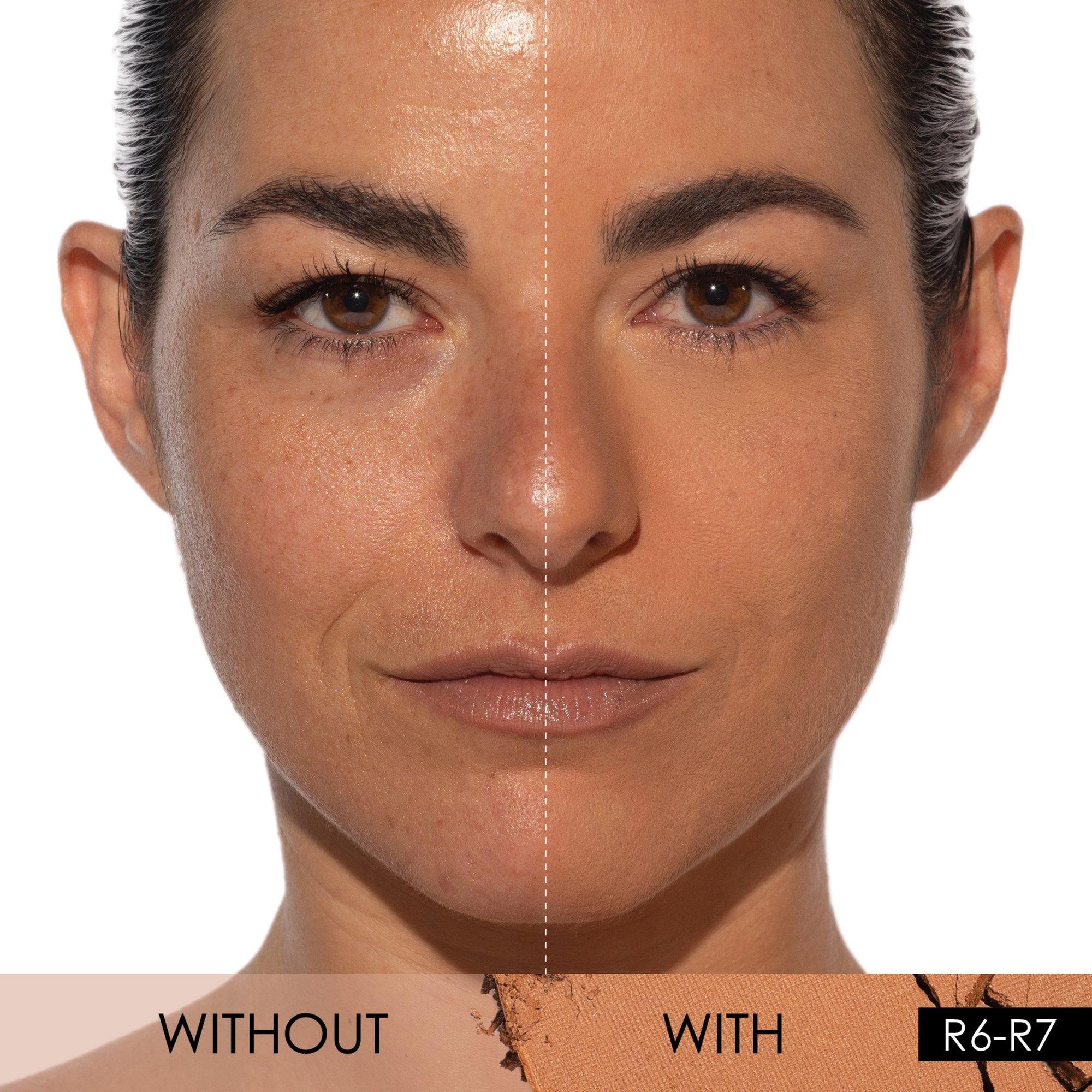 ND PRO TIP: Use a darker shade of the powder foundation to contour the outer rim of the face and nose.