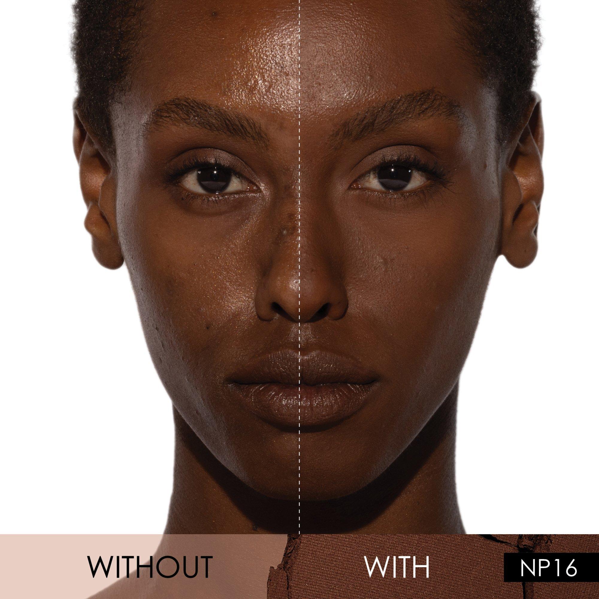 ND PRO TIP: Use a darker shade of the powder foundation to contour the outer rim of the face and nose.
