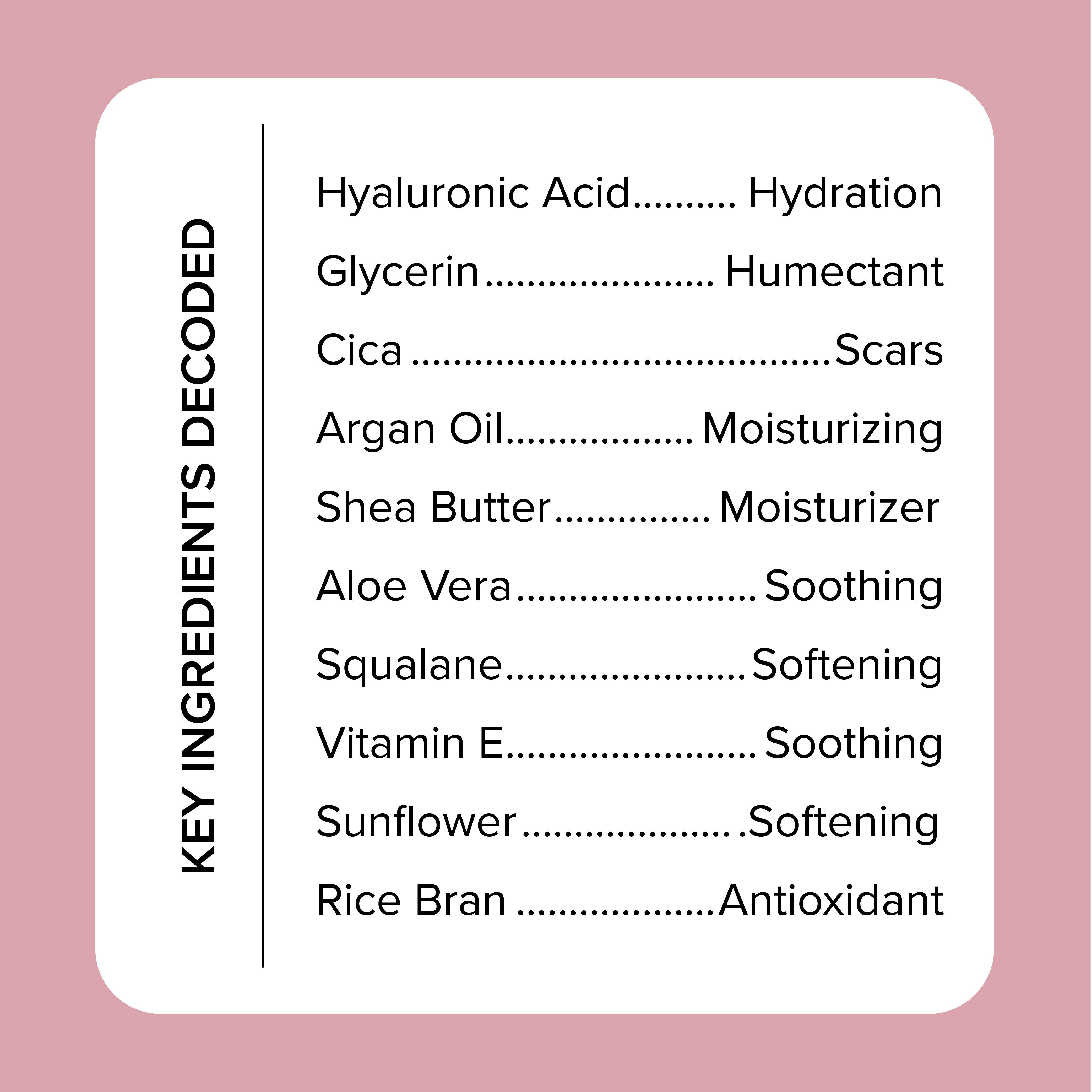 Our Hydrate + Renew Hyaluronic Acid Body Cream helps dehydrated dry skin. The combination of Hyaluronic Acid, Cica & Apple Extract helps draw in moisture, keeping your skin hydrated and renewed.