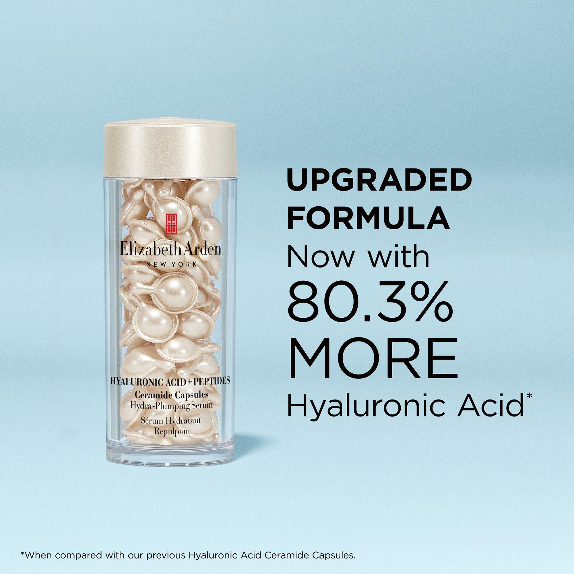 Elizabeth Arden's Hyaluronic Acid + Peptides Ceramide Capsules deliver targeted hydration and visible skin-plumping benefits. Powered by Size-Shifting Hyaluronic Acid Technology, the serum penetrates 4X deeper than traditional hyaluronic acid.