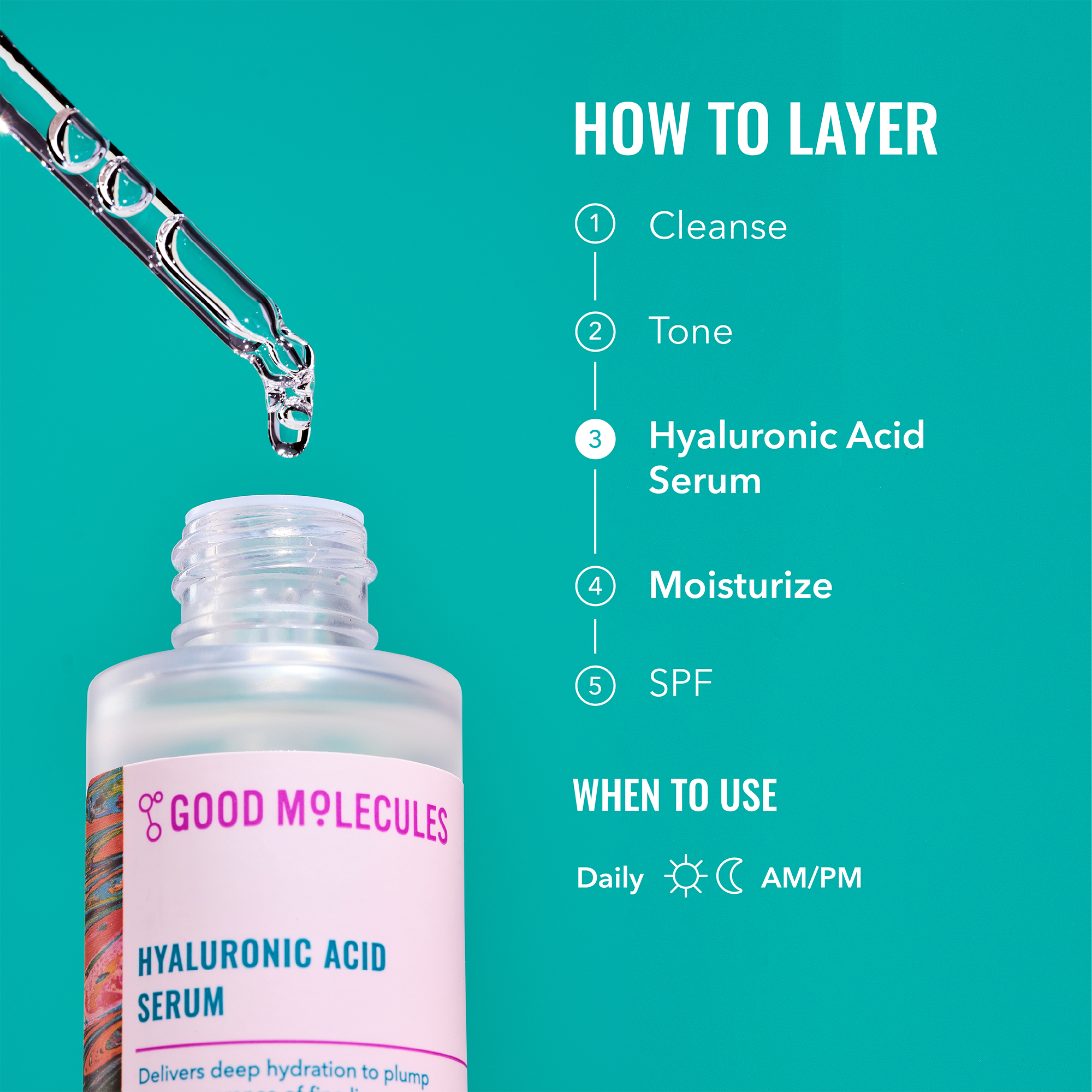 Apply a few drops in the morning and at night before oils, creams, and moisturizers. For best results, apply to damp skin. Let absorb for 30 seconds before continuing with your routine. Suitable for daily use.