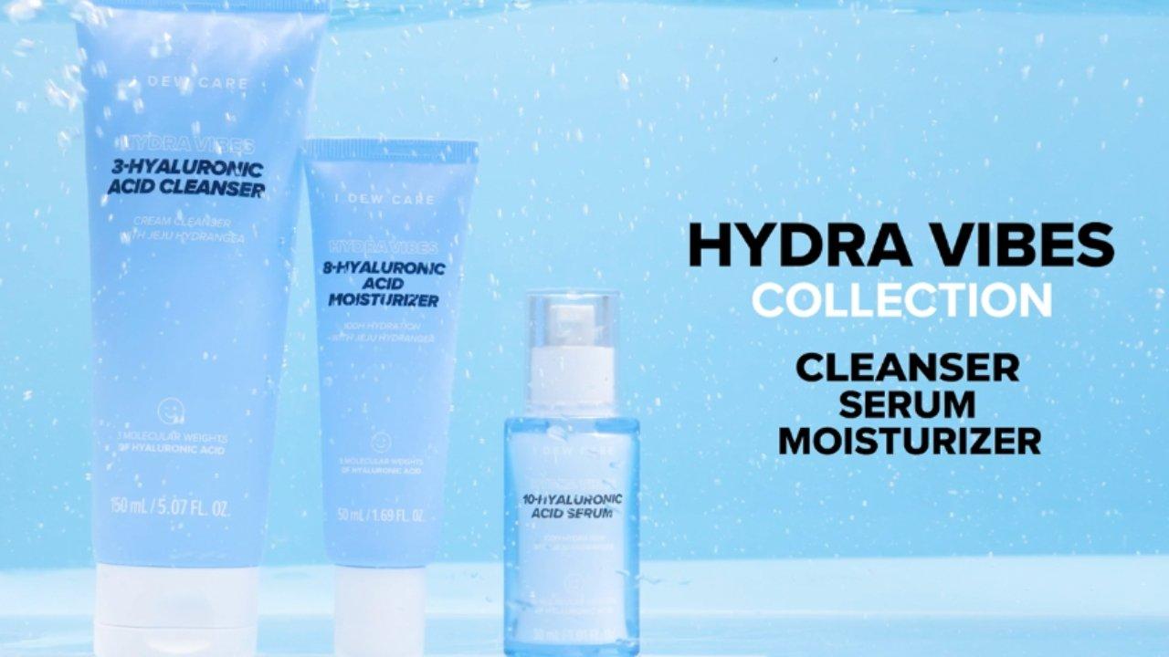 Cleanse, Refresh and Replenish Skin's Moisture Barrier! I Dew Care 3-Hydra Vibes 10-Hyaluronic Acid Cleanser removes makeup and excess oil, infused with 3 distinct molecular weights of Hyaluronic Acid and Hydrangea Leaf Extract. This cleanser leaves skin feeling refreshed, softer, and hydrated.