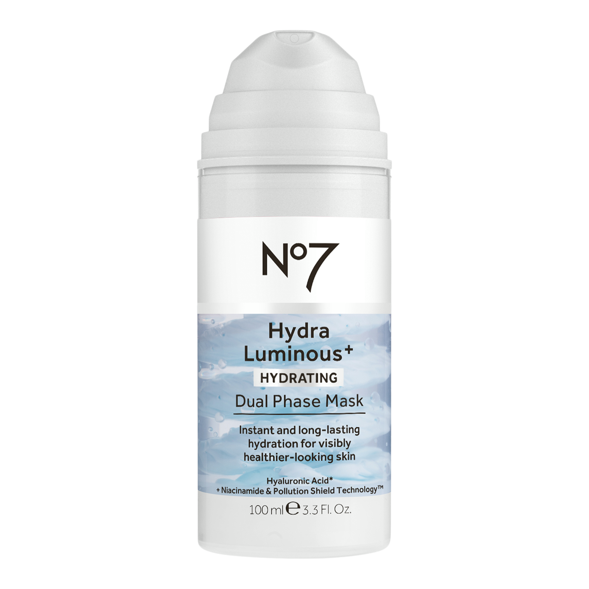 No7 HydraLuminous+ Dual Phase Mask locks in 72 hours of intense hydration that can improve dehydrated skin in just 15 minutes, leaving it feeling soft and smooth. Also used as an overnight treatment to replenish skin's moisture levels, so you wake up to dewy-looking, radiant skin.