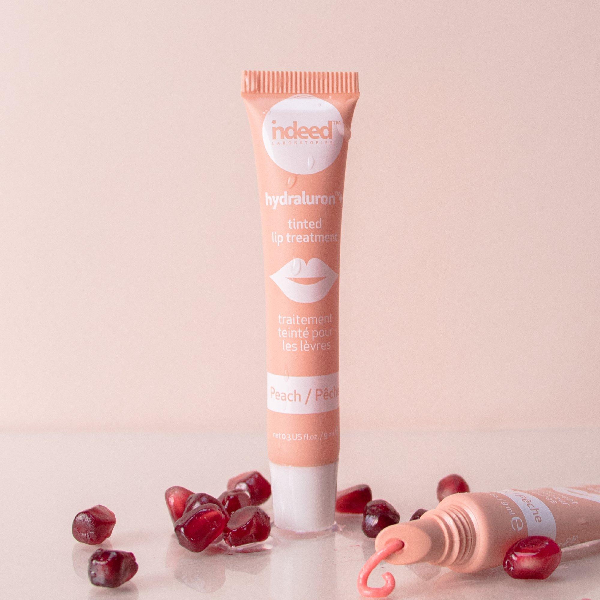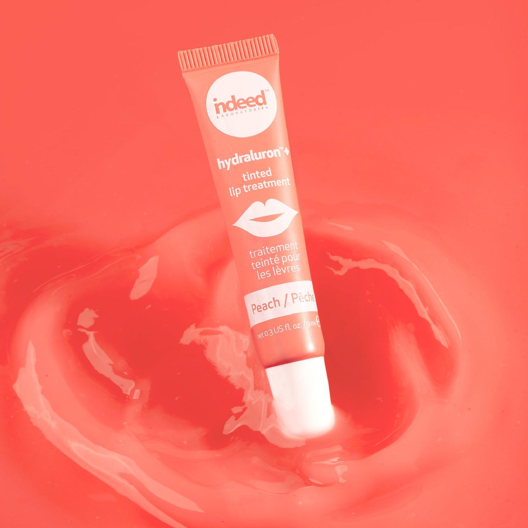 The Indeed Labs Hydraluron + Tinted Lip Treatment in peach contains extremely soothing ingredients that are designed to nourish, plump, hydrate and tint lips. It adds a beautiful sheer colour to your lips while working to improve lip roughness, dryness and radiance.