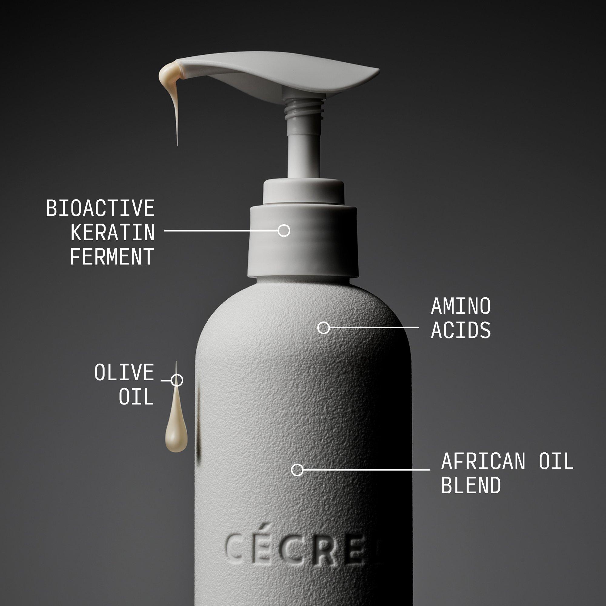 • Bioactive Keratin Ferment - Cécred's patent-pending technology: this fermented blend from lactobacillus, a hydrolyzed wool keratin, and honey balances, reduces breakage, delivers a protein infusion, and repairs with healing humectants