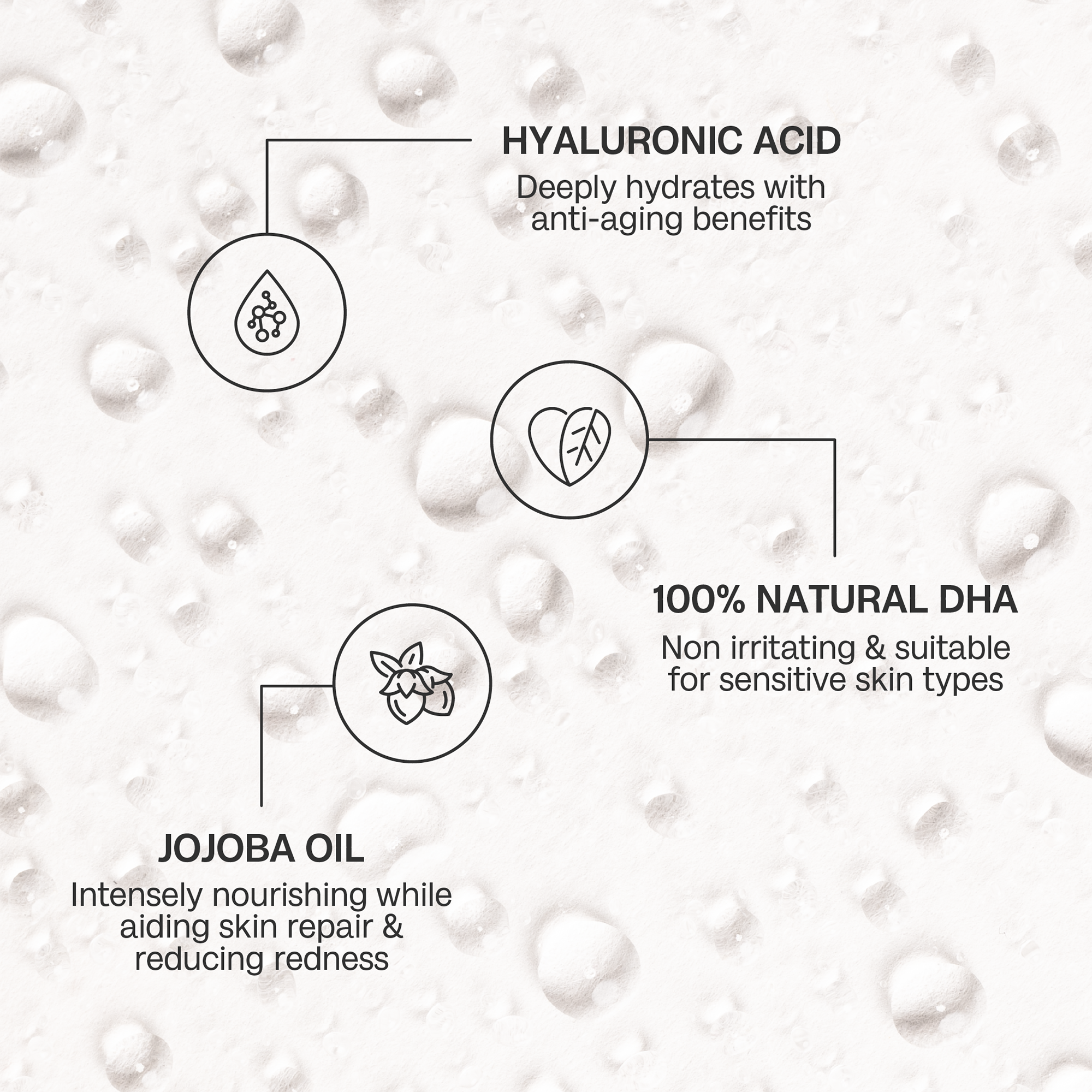 • Skincare meets self tan with this hydrating blend of actives and botanicals, mixed with 100% natural DHA. Enriched with Aloe Vera, Hyaluronic Acid and Jojoba Oil, experience a soothing, cooling experience with every spritz.