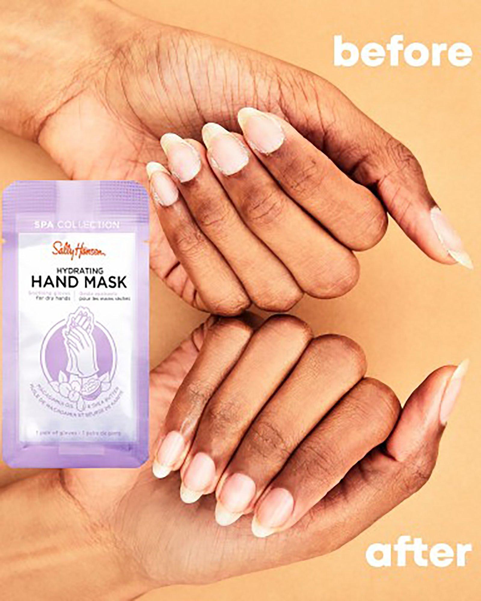 Sally Hansen Spa Collection Hydrating Hand Mask. Infused with Vitamin E, Macadamia and Shea Butter to instantly relieve dry hands and improve the conditions of your nails.