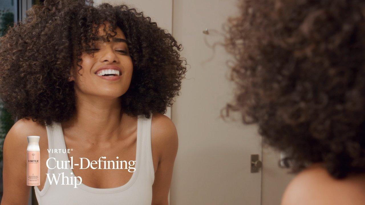 Get defined, touchable curls with Virtue's hydrating, silicone-free Hydrating Shea Butter Curl-Defining Whip that protects against frizz and environmental pollutants.