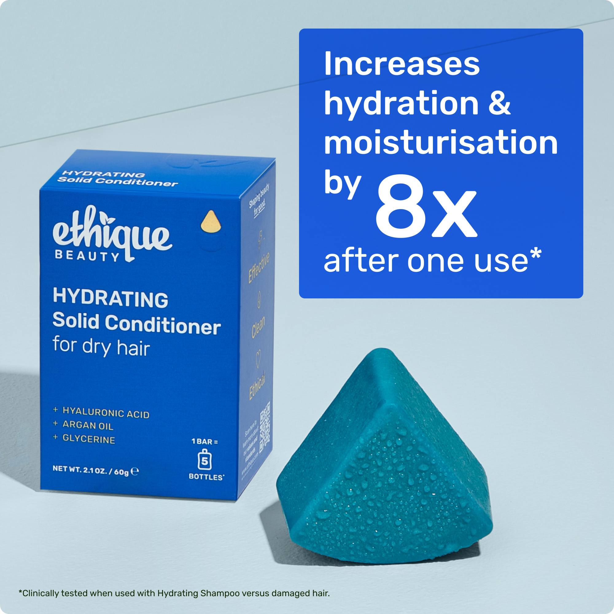• *When used with Ethique's Hydrating Shampoo versus damaged hair)