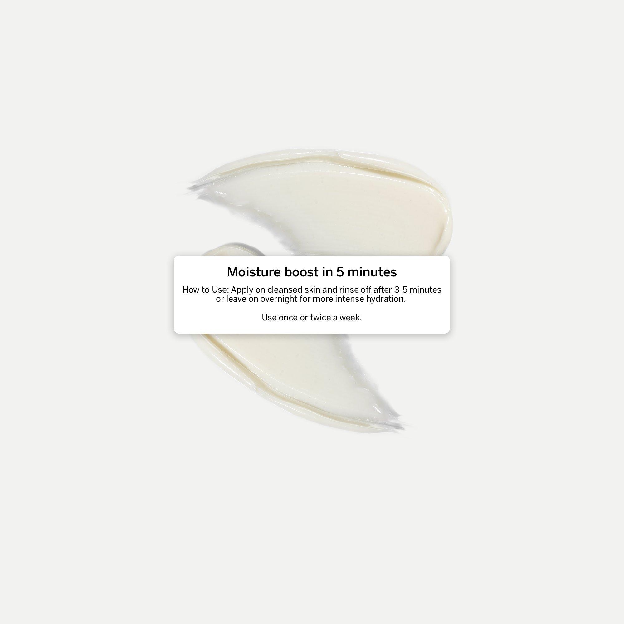 Apply 1-2 times a week. Can be rinsed off after 3-5 minutes or left on all night for a more intense hydration.