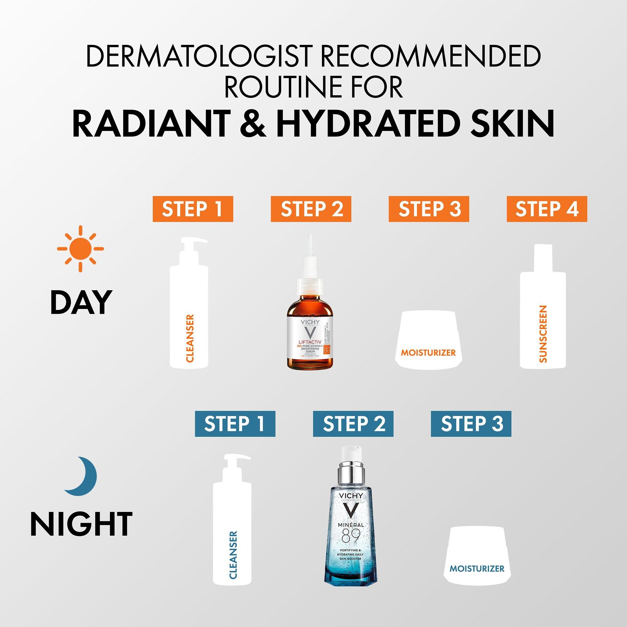 Start your routine with Vichy's dermatologist-grade Vitamin C serum with 16% Pure Vitamin C to firm and smooth the skin while brightening complexion.
