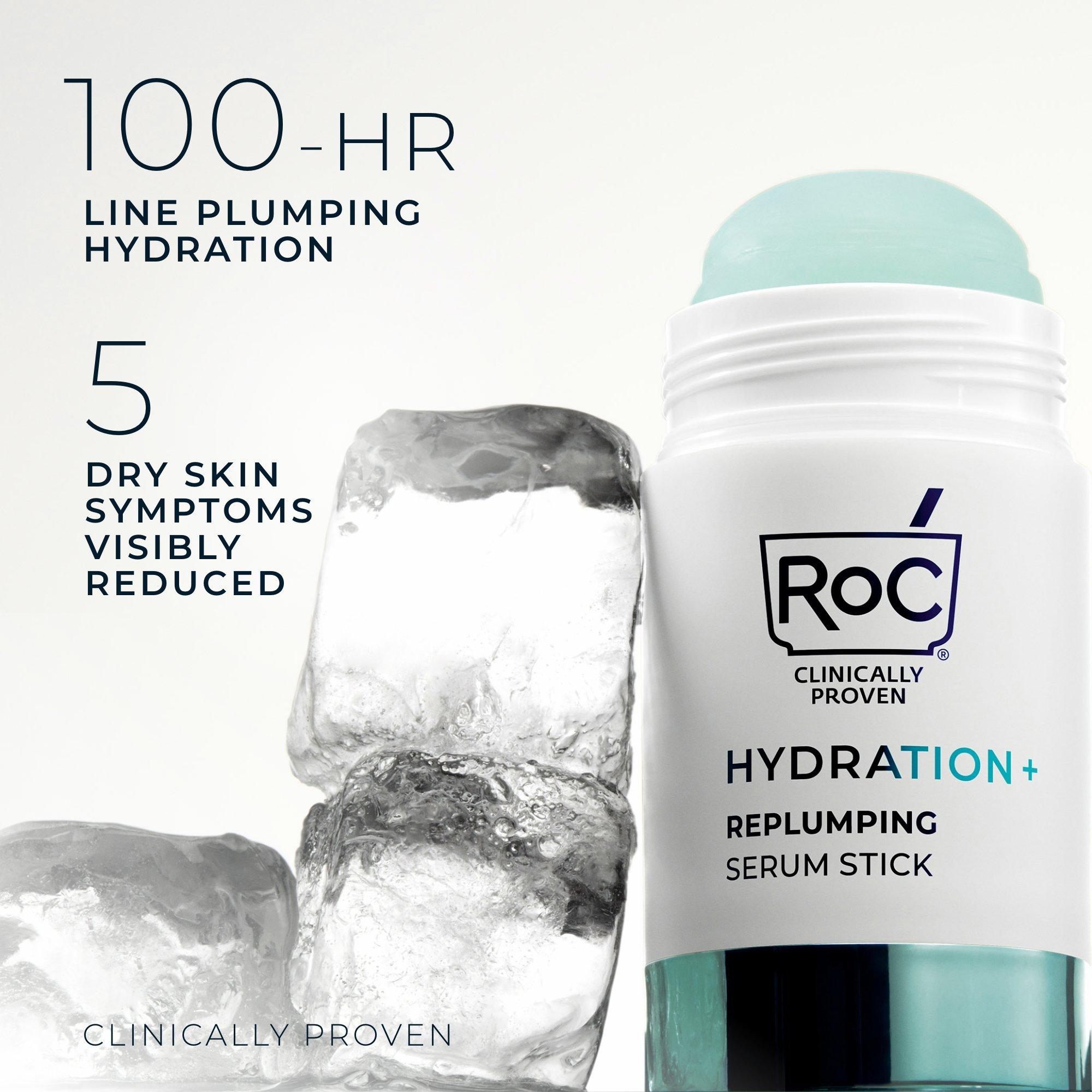 Beyond hydration, discover RoC’s Hydration+ Replumping Serum Stick developed with Dermatologists. Inspired by wrinkle fillers, this cooling serum stick combines concentrated hyaluronic acid, pro-collagen and blue peptides to deeply hydrate in seconds for visibly younger-looking skin.