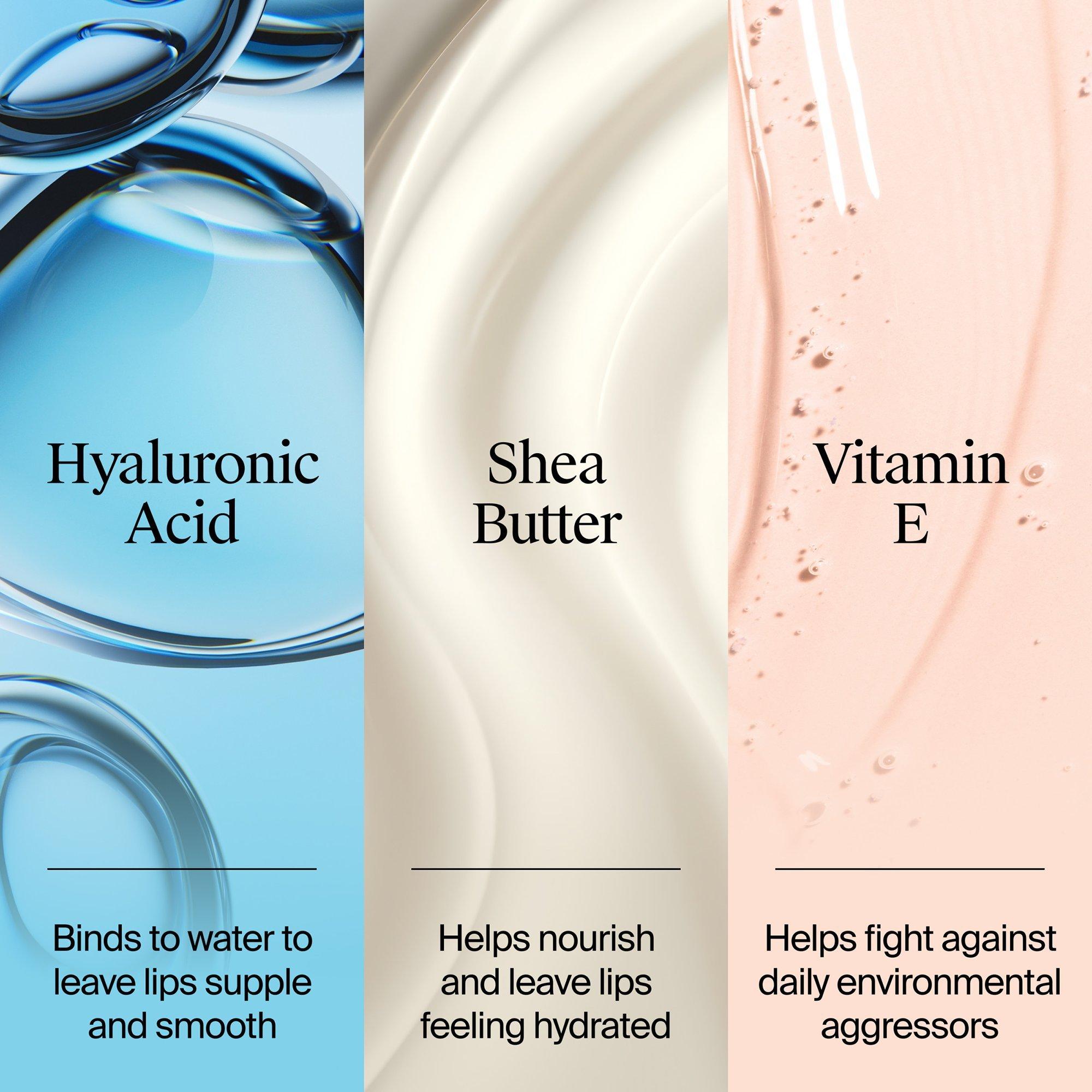 Give lips nourishing hydration & a glossy sheer pink tint with Neutrogena Hydro Boost Hyaluronic Acid Lip Balm. This velvety, luxurious balm is formulated with vitamin E & shea butter for all day visibly juicy, supple lips