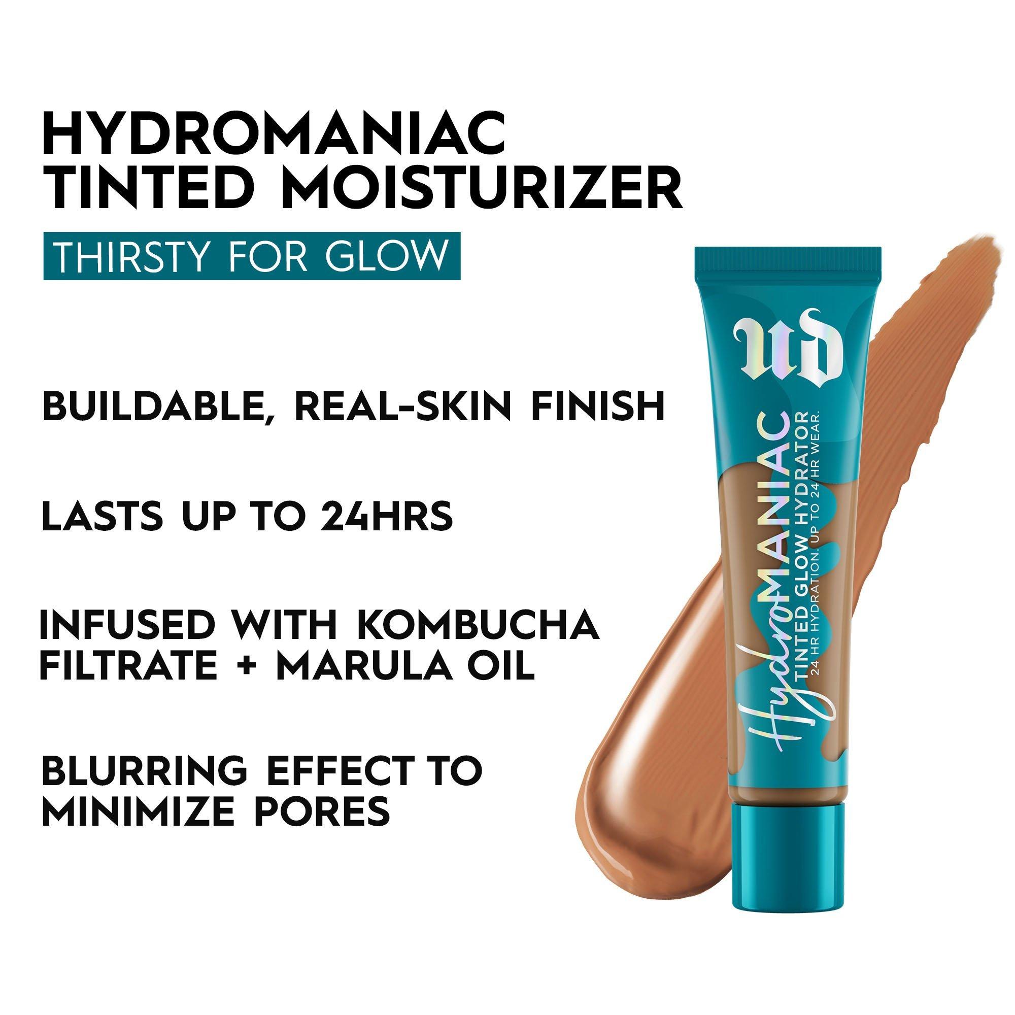Urban Decay Hydromaniac Hydrating Dewy Foundation is a moisturzing, long-lasting medium coverage foundation with a dewy finish infused with kombucha filtrate + marula oil for glowy skin.
