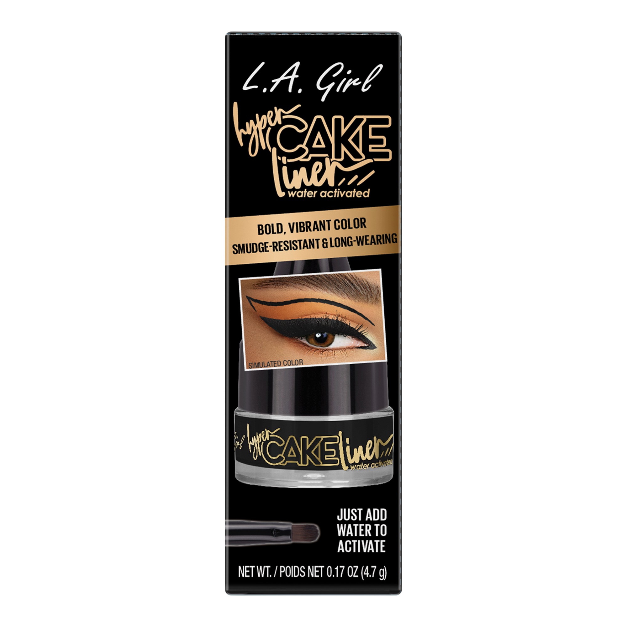 Give your eyes that fierce-on point eye look! The L.A. Girl water activated Hyper Cake Eye Liner that is smudge-proof and won't fade until it's removed. No smudging, all slayage. Bold, vibrant color with intense pigments for long lasting wear. Precise bult-in liner brush.