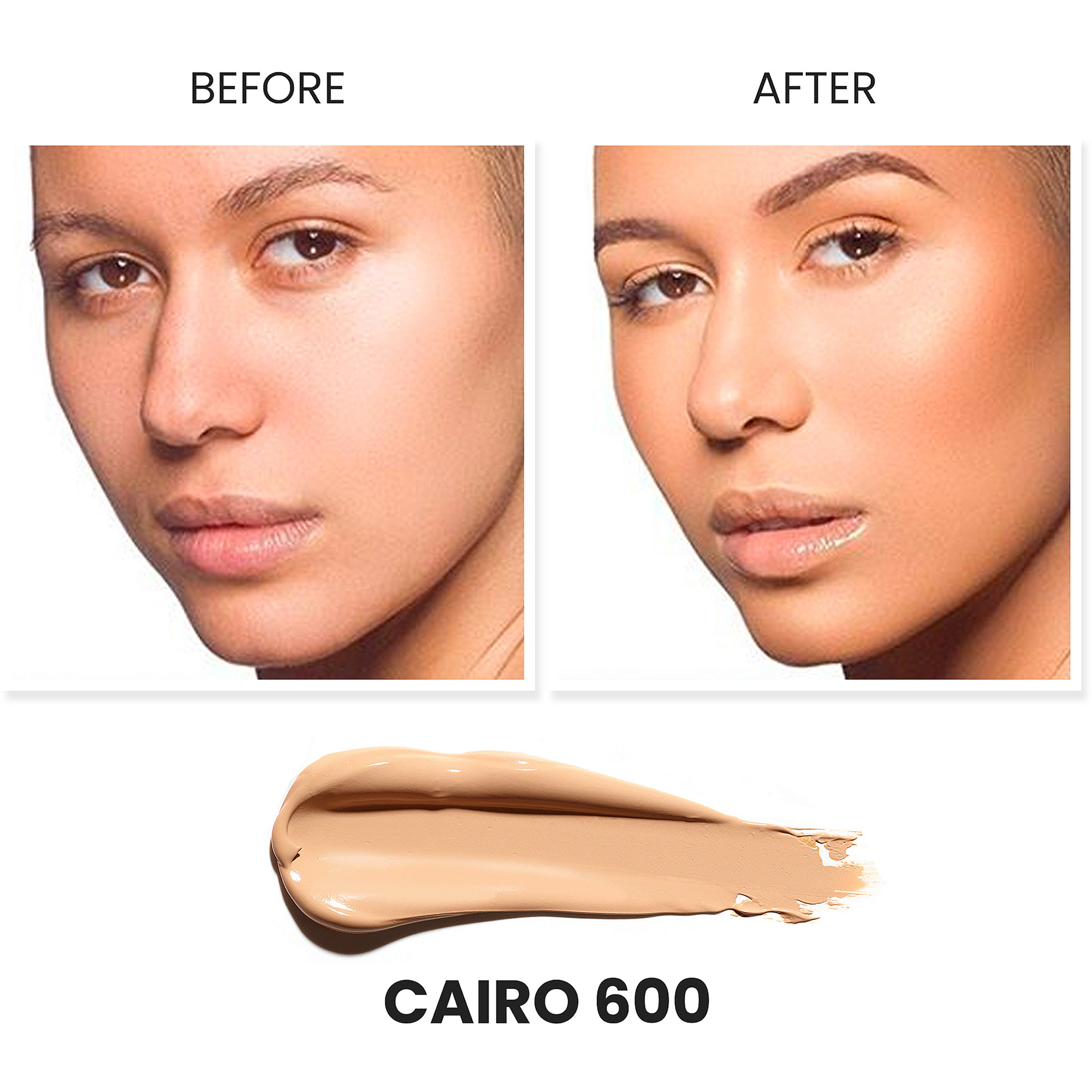 Apply product with a wet beauty sponge or synthetic makeup brush with a sweeping and buffing motion all over the face.