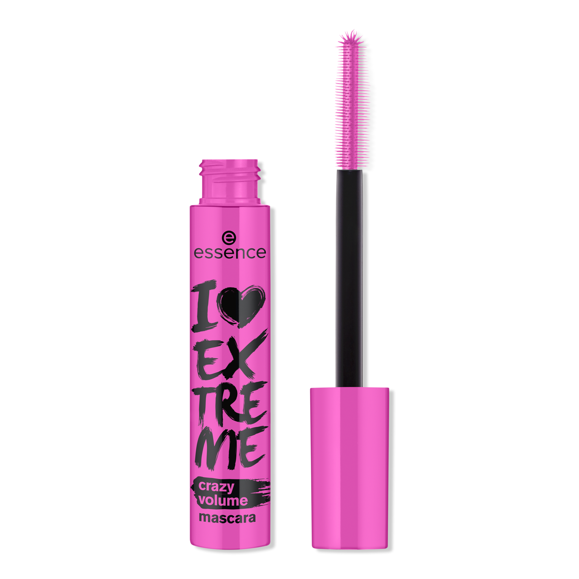 Essence I Love Extreme Crazy Volume Mascara has an ultra black formula and extra-large plastic brush that work together to give your lashes crazy volume!