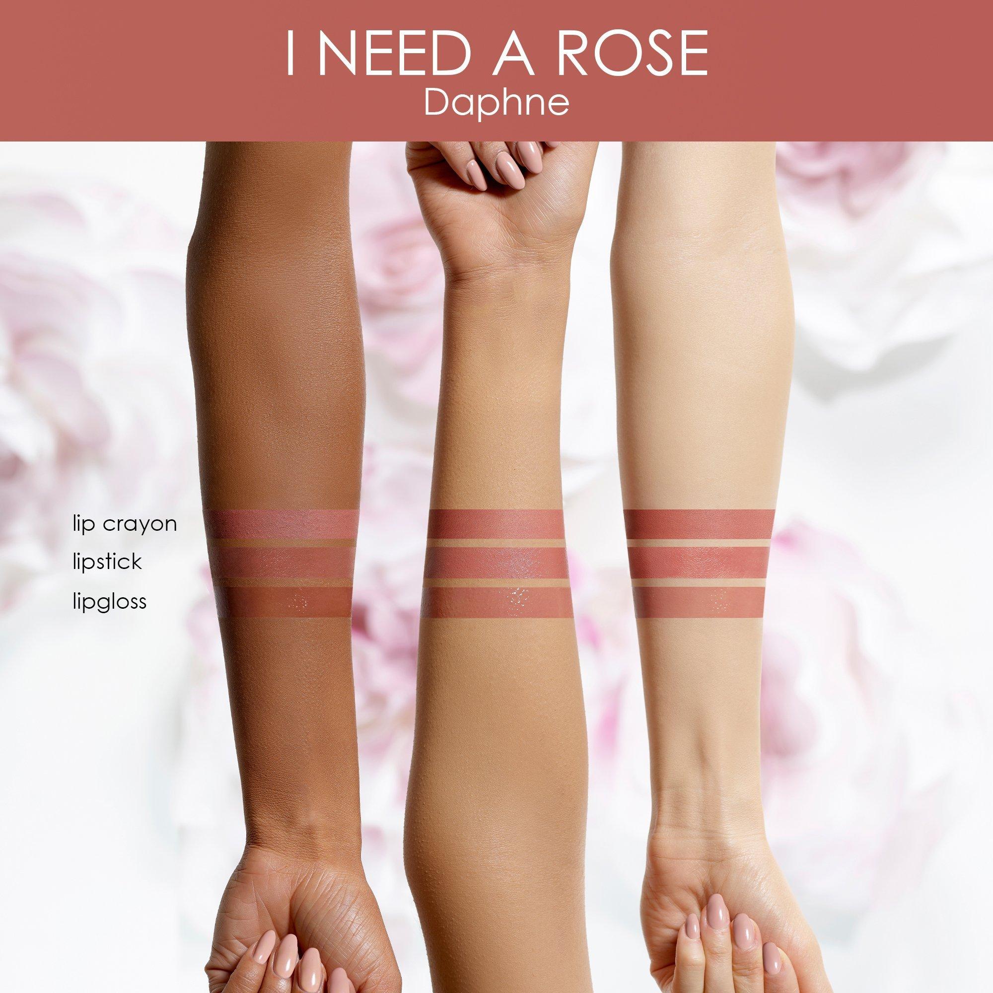 Apply lipstick to lips and top with I Need A Rose Lip Gloss (sold separately) for a boost of shine.