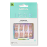 REMOVAL: Trim \& file surface to disrupt protective top coat. Use KISS Glue OFF(sold separately), or soak nails in acetone polish remover until soft. Wipe off softened nails \& glue. Do not force or pull nails off.