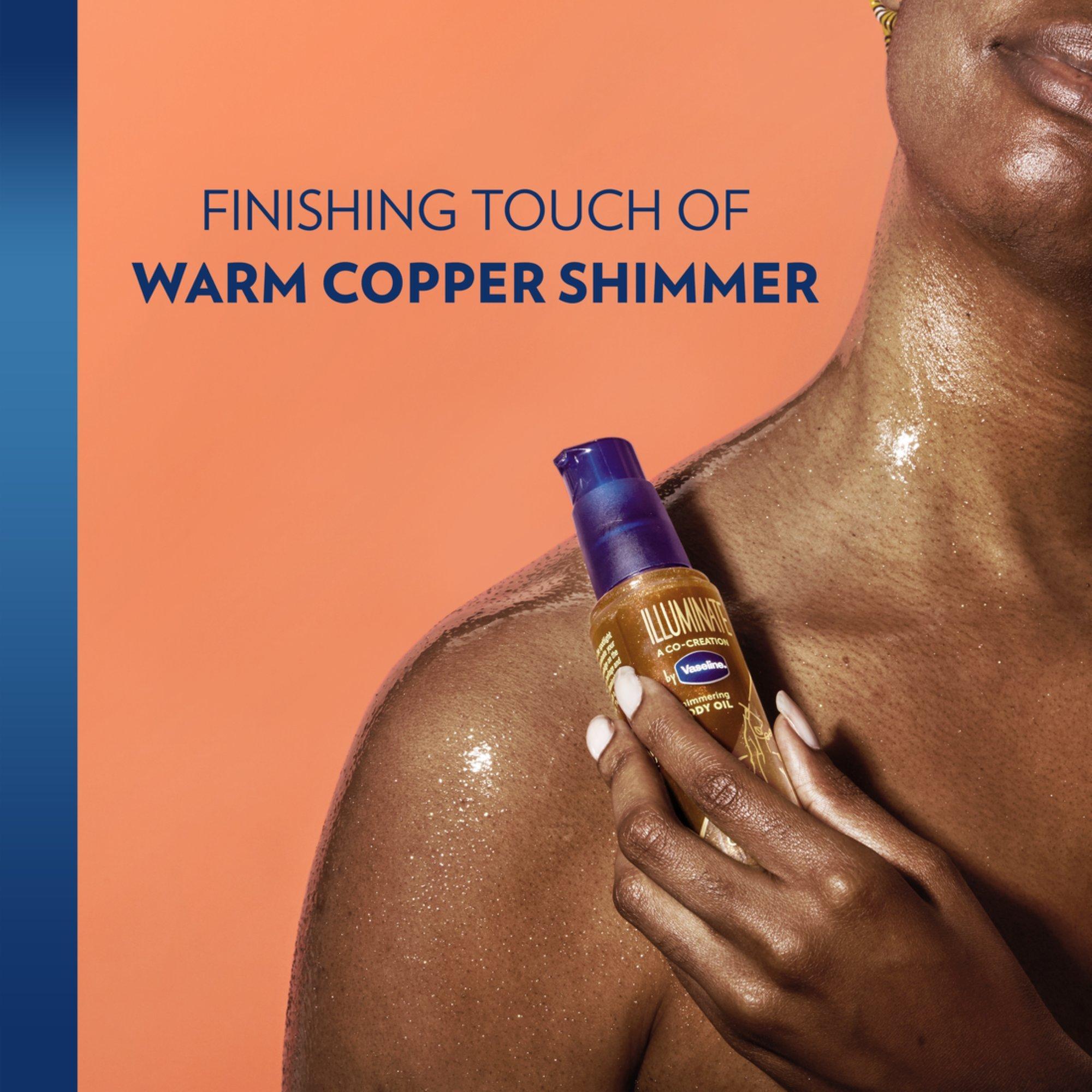 Designed with influential Black women & fused their knowledge on the unique needs of melanin rich skin with the heritage & skincare expertise of Vaseline to craft Illuminate Me Shimmering Body Oil.
