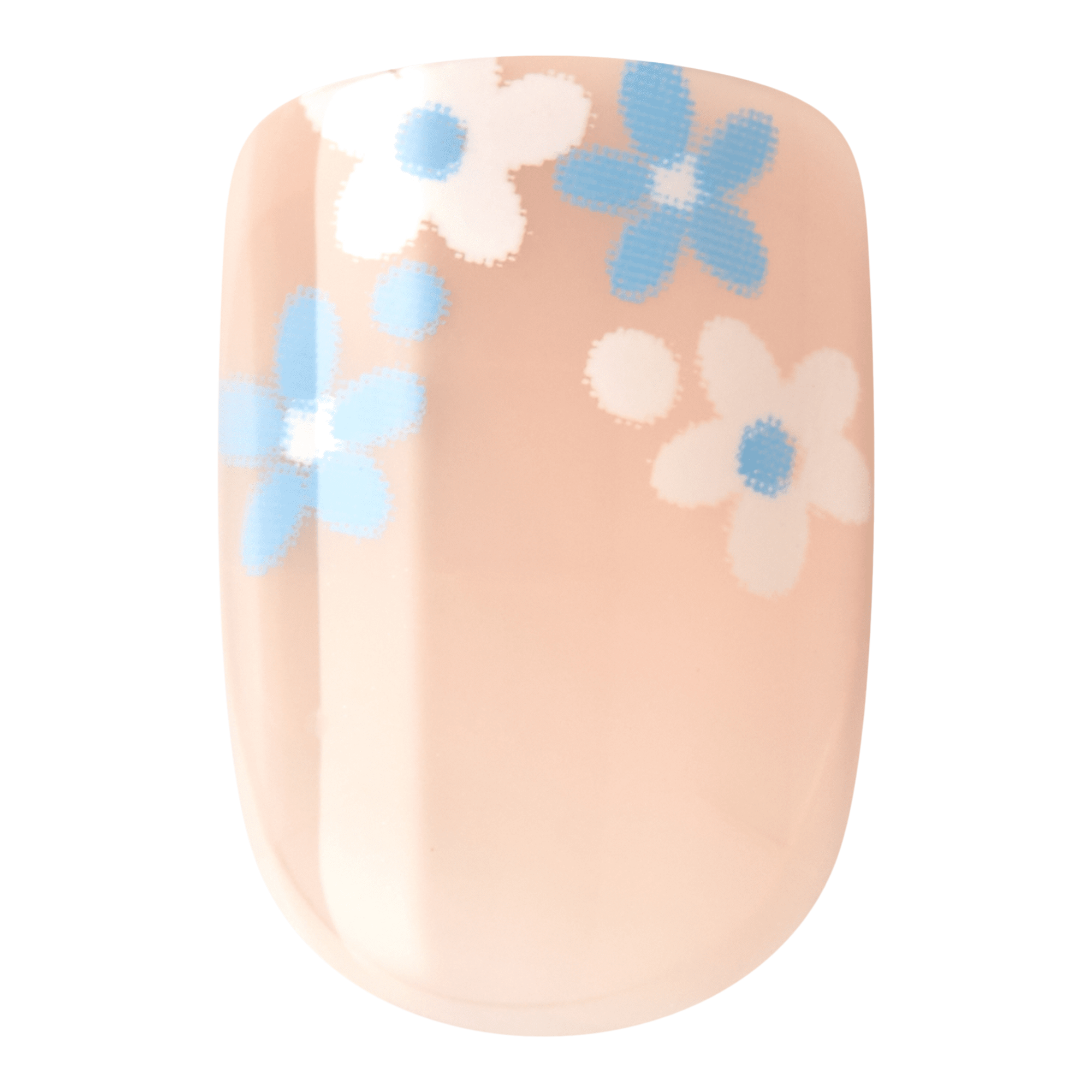 Peel backing from nail then press it down on your natural nail, in the center and at both sides at the same time. Hold for 30 seconds. (Press on thumbnails last.)