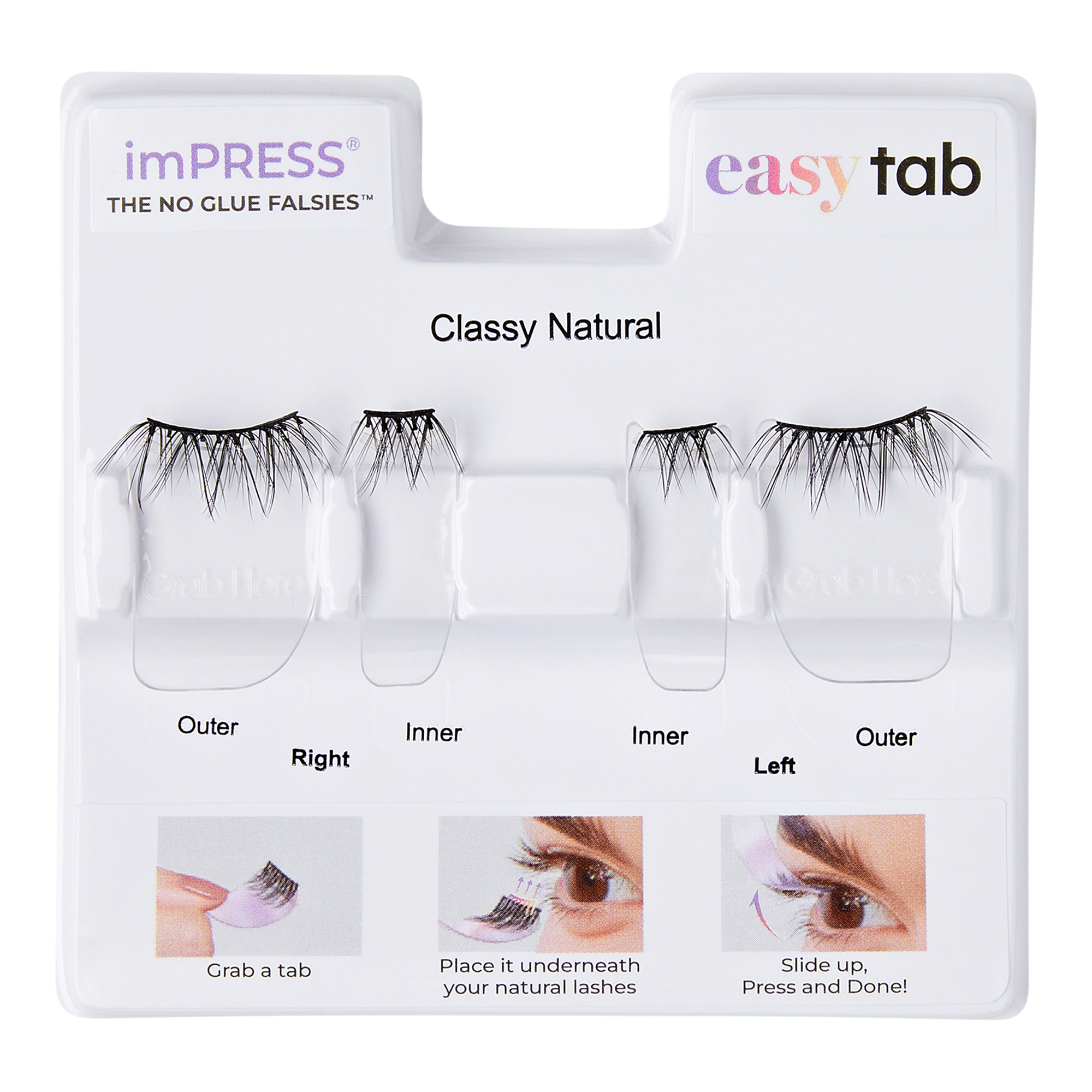 imPRESS Easy Tab is the secret to flawless lashes in seconds! Designed for beginners & lash lovers who want lashes in an instant, Easy Tab lashes feature a revolutionary application process for simple, one-step beginner friendly lashes — just press & you're done!