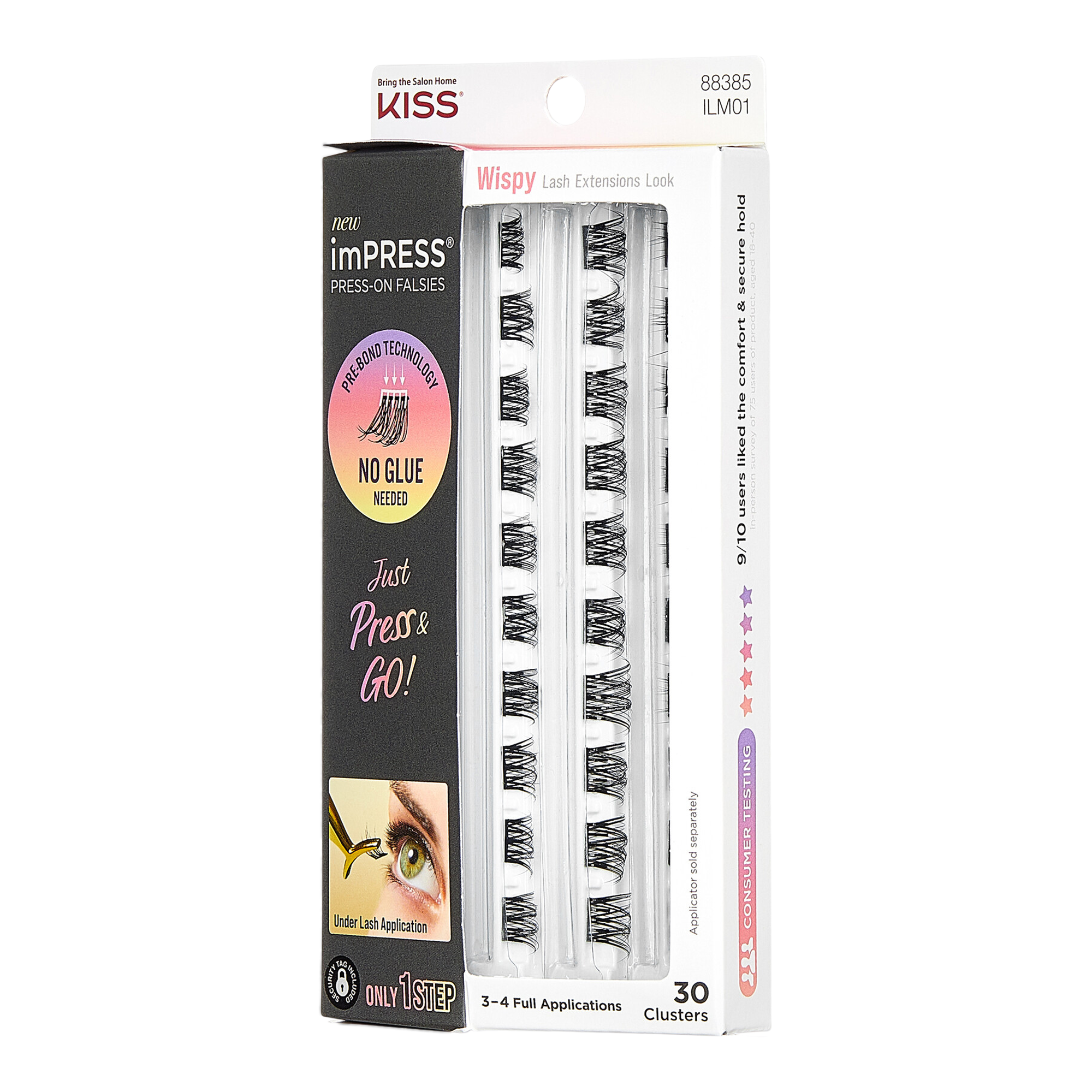 Lash in a flash with No Glue Needed - Just Press On & Go! Kiss imPRESS Press-on Falsies Wispy, with Pre-Bonded Breakthrough Technology, are a game changer. The first ever press-on under lash application lets you lash in 1 simple step. With no mistakes and no mess, these lashes are for everyone!
