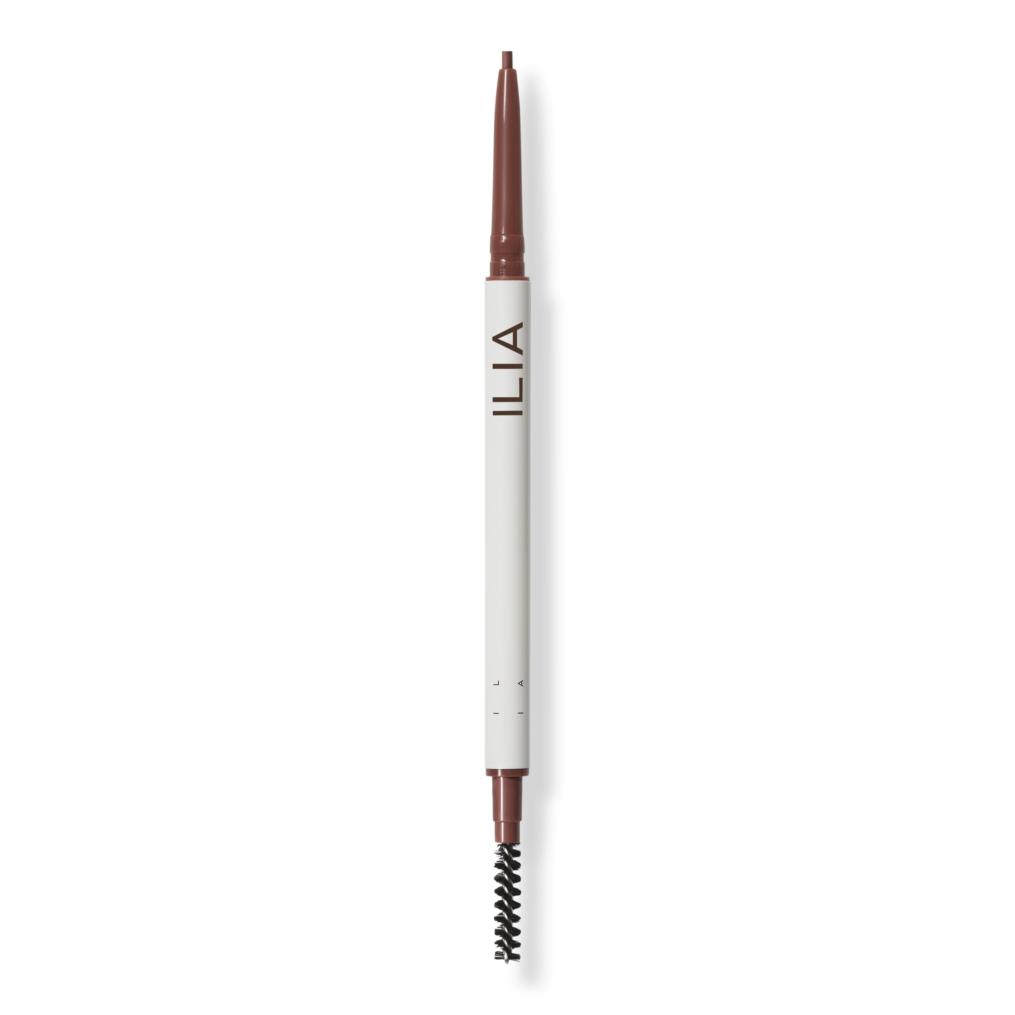 ILIA In Full Micro-Tip Brow Pencil defines brows with thin hairlike strokes. A built-in spoolie blends soft layerable pigment for natural dimension.