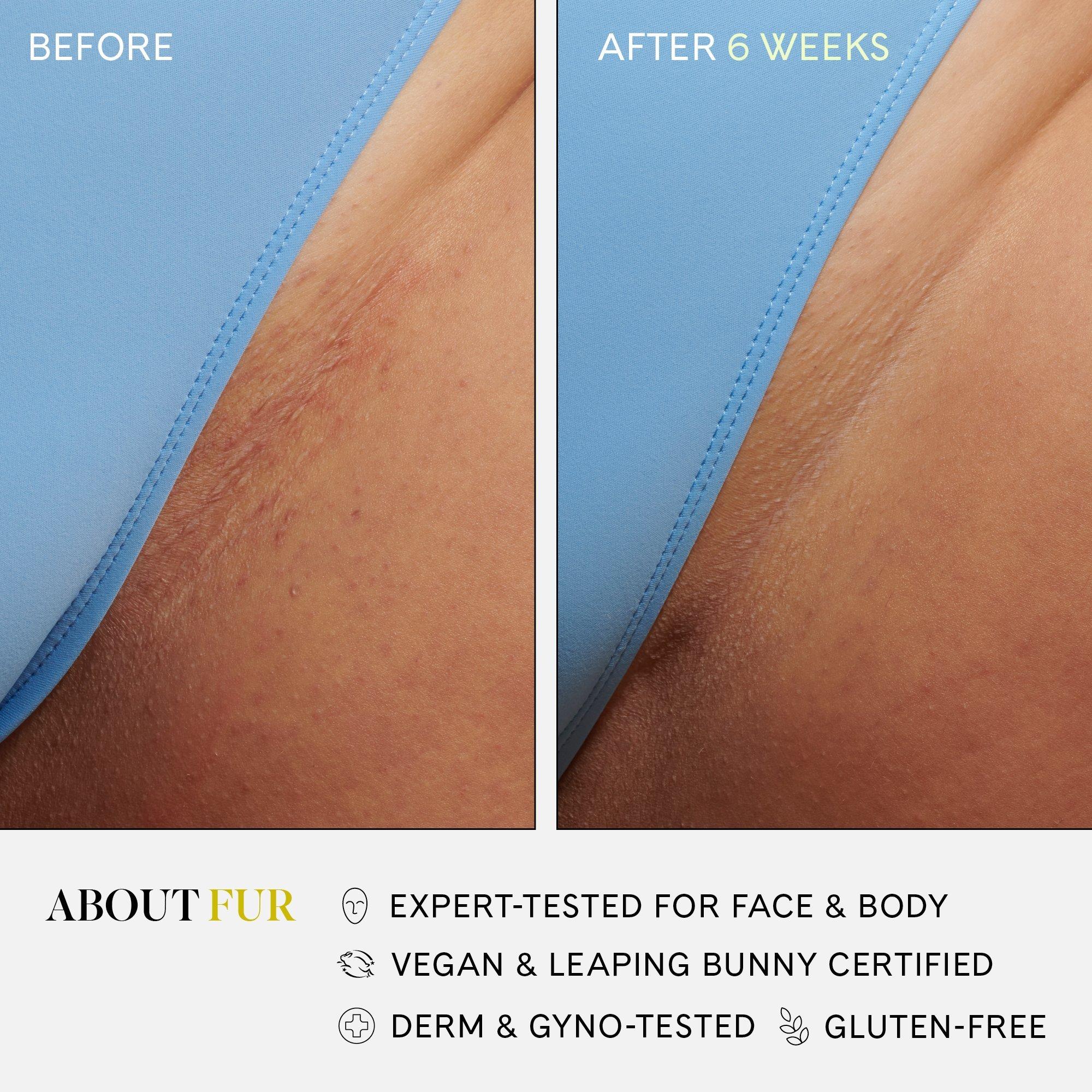 Fur's Ingrown Concentrate gently banishes bumps and redness. Together this all-natural oil and textured finger mitt soothe irritation and eradicate ingrowns, resulting in clear, smooth pores for even the most sensitive skin.