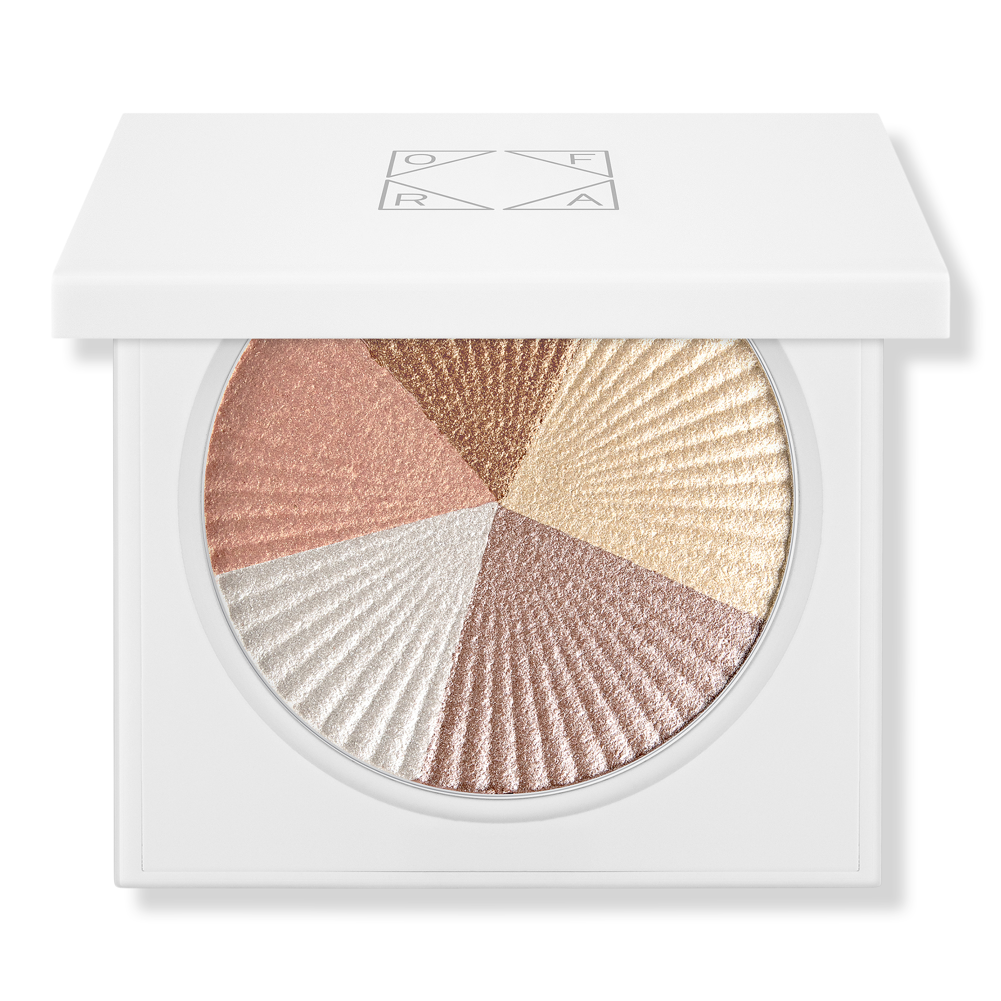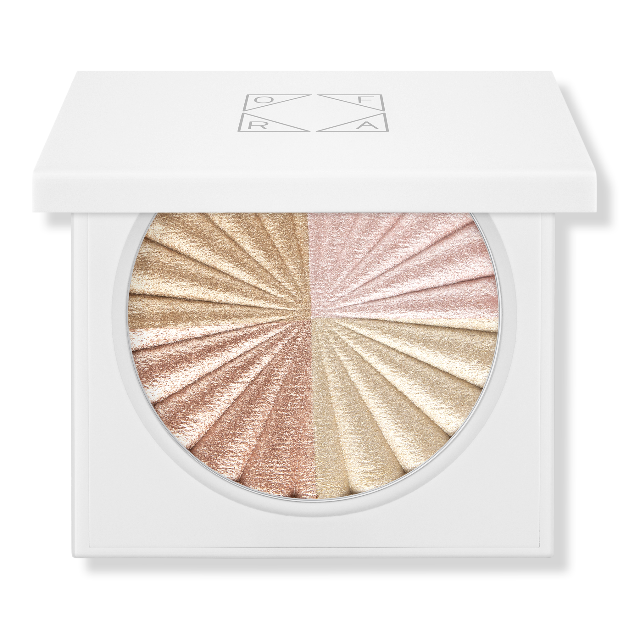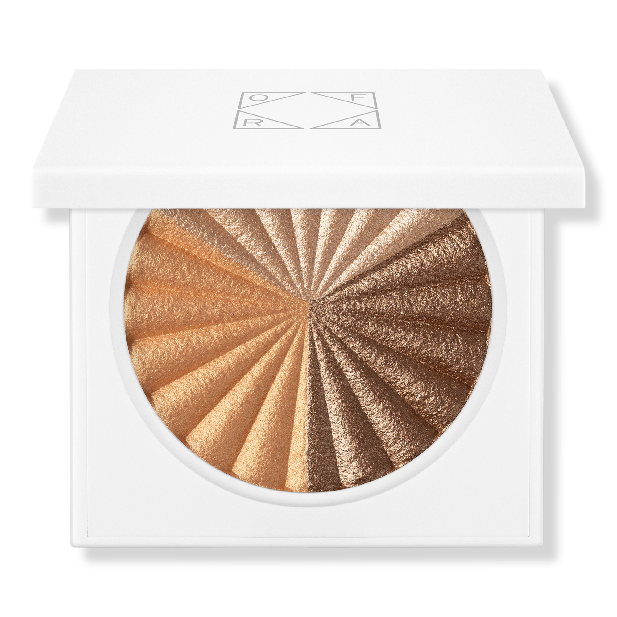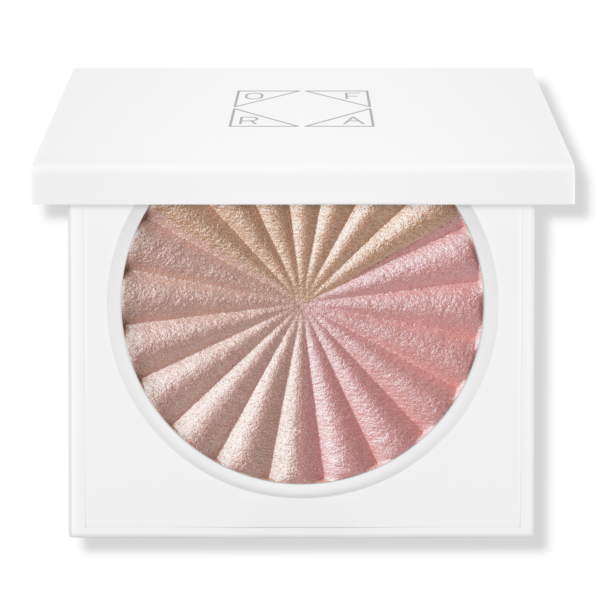 Radiate from within with OFRA's pink and white striped holo-shift Inner Glow Shimmering Baked Highlighter. Glow game is at 100. Experience this captivating highlighter with its pink and white stripes that can be used on their own or combined.