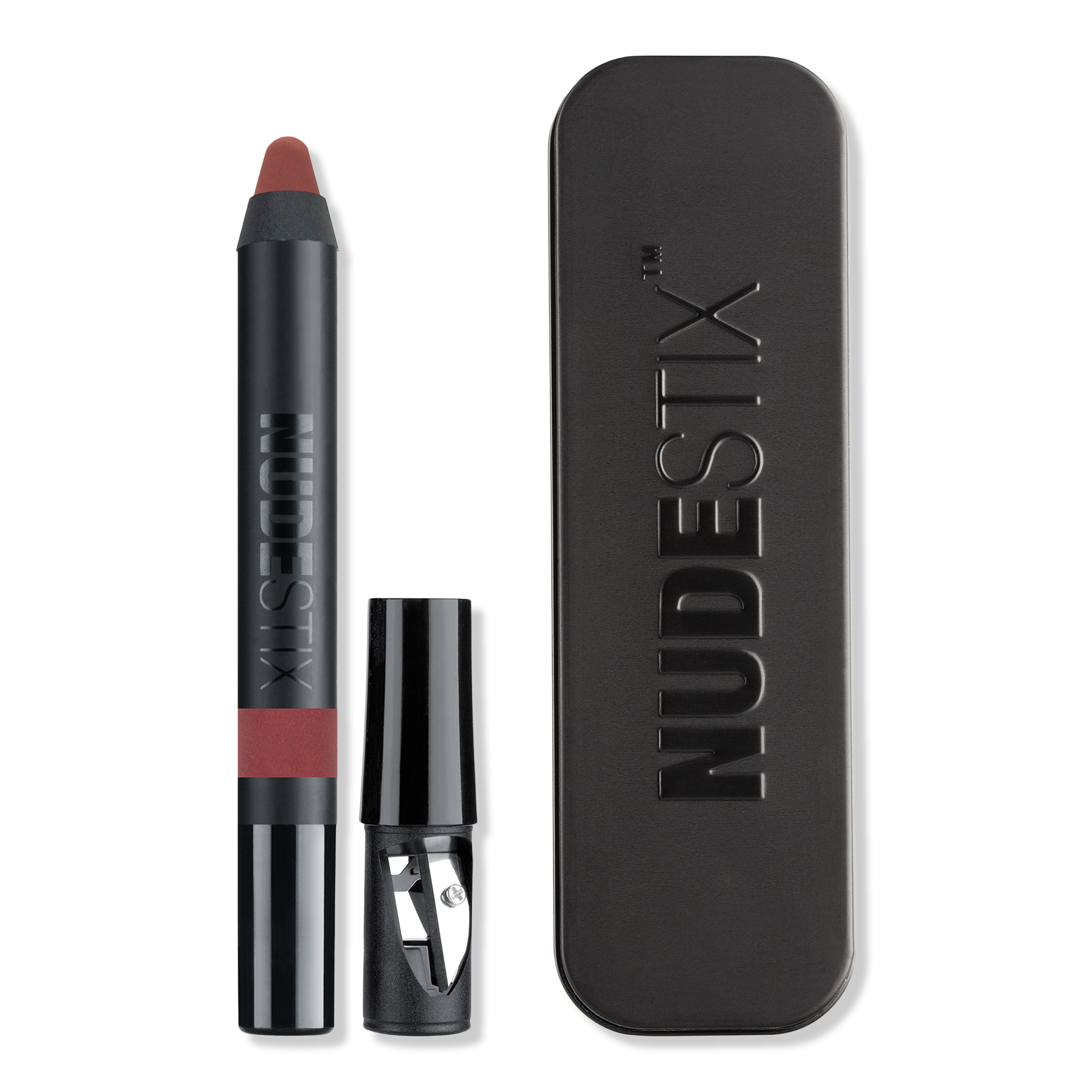 NUDESTIX Intense Matte Lip + Cheek Pencil is a 3-in-1 soft, non-drying matte lipstick, lip liner, and cheek blush pencil.
