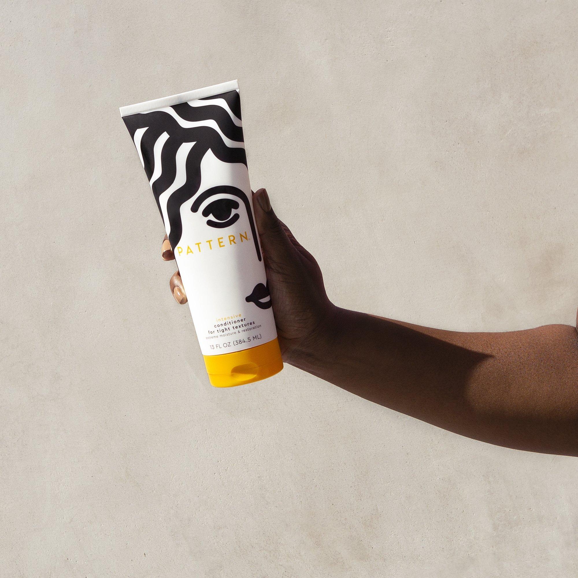 PATTERN's ultra-hydrating, rich Intensive Conditioner, ideal for tighter textures and restoring moisture to low porosity hair. It helps protect against breakage and dryness while leaving definition behind after rinse-out. Doubles as a deep conditioner.