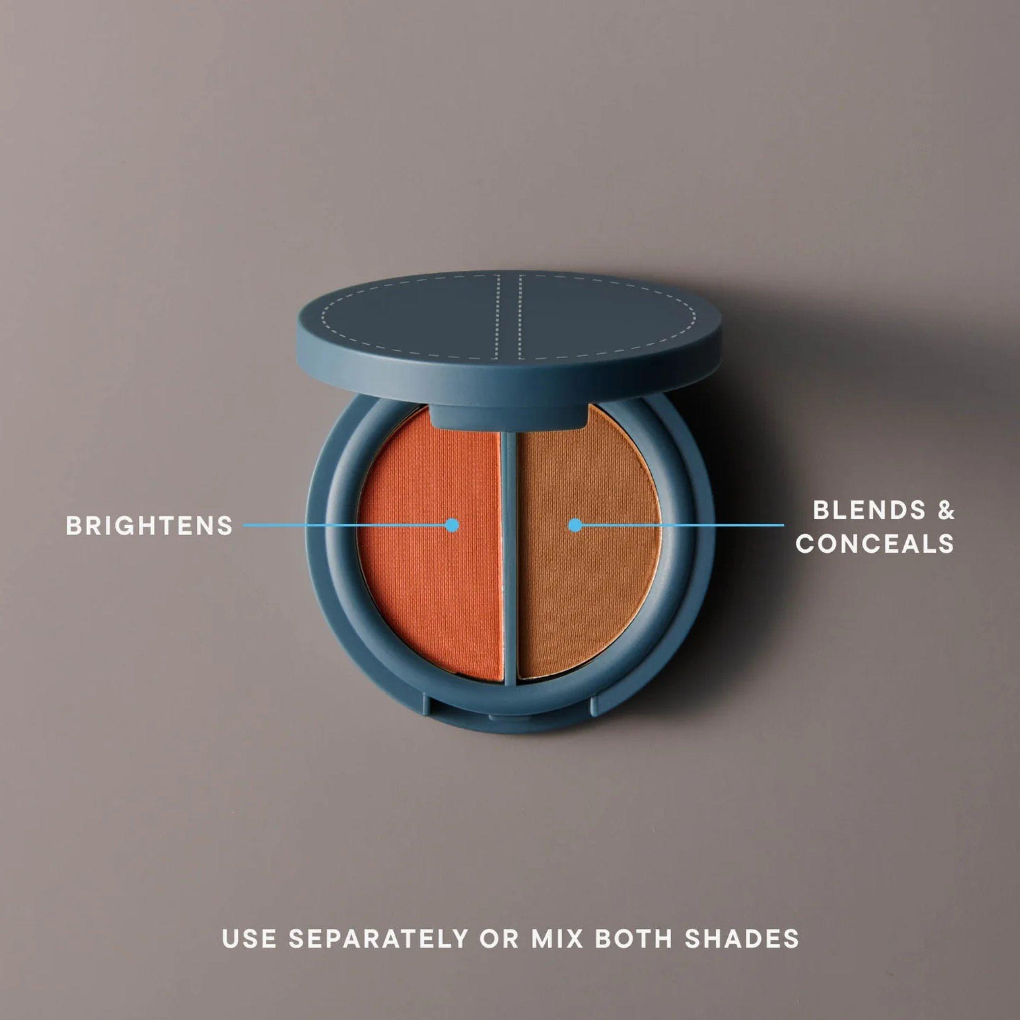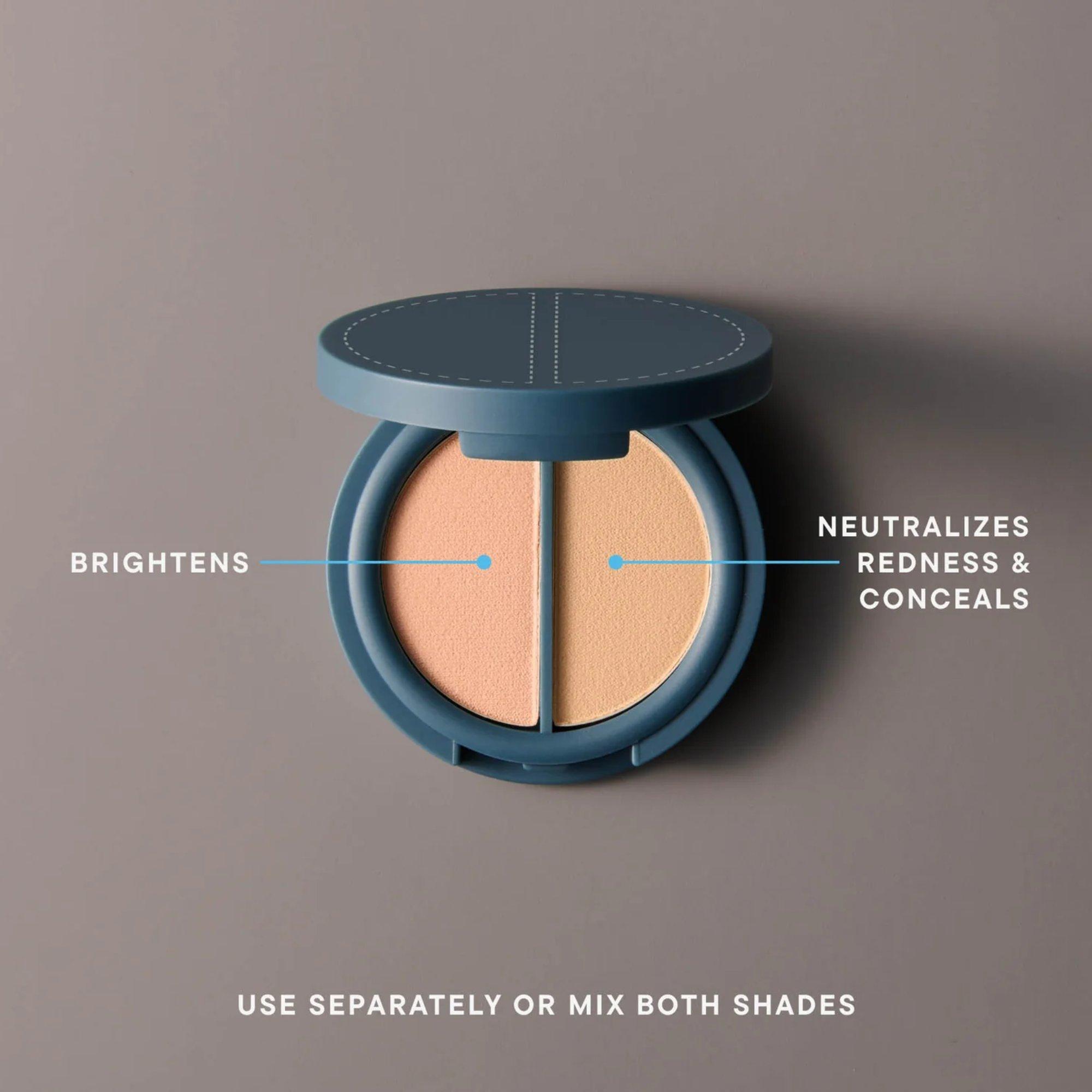 The first pressed powder concealer & color corrector for the most invisible coverage & natural finish. Our clean, fragrance-free, talc-free formula won’t irritate or clog pores. One discreet compact with two hues of ultra fine powder builds your perfect match. Wear with makeup or on bare skin.