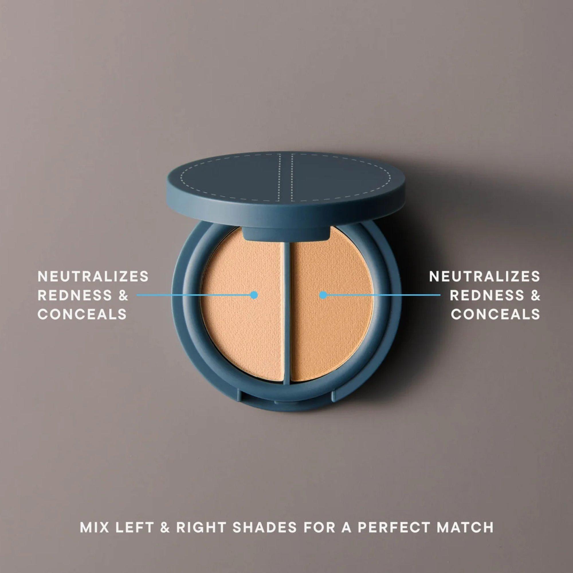 The first pressed powder concealer & color corrector for the most invisible coverage & natural finish. Our clean, fragrance-free, talc-free formula won’t irritate or clog pores. One discreet compact with two hues of ultra fine powder builds your perfect match. Wear with makeup or on bare skin.