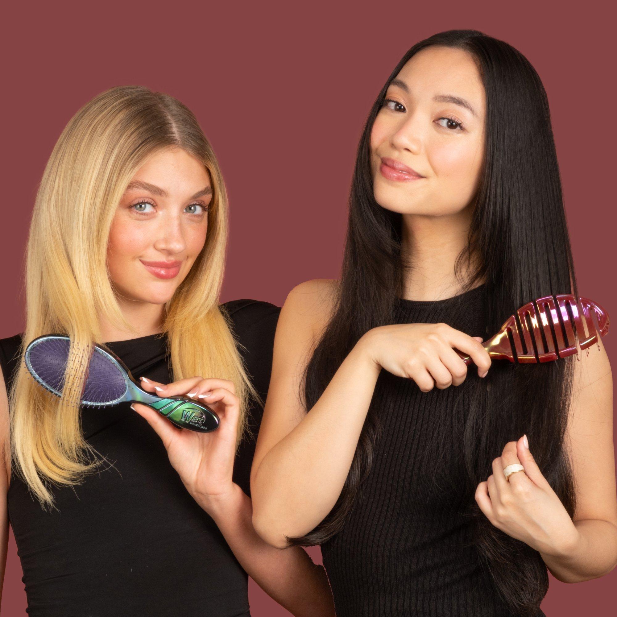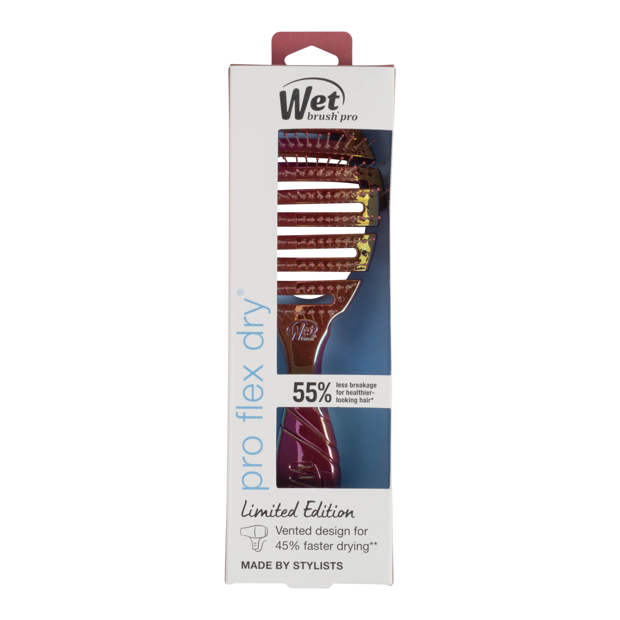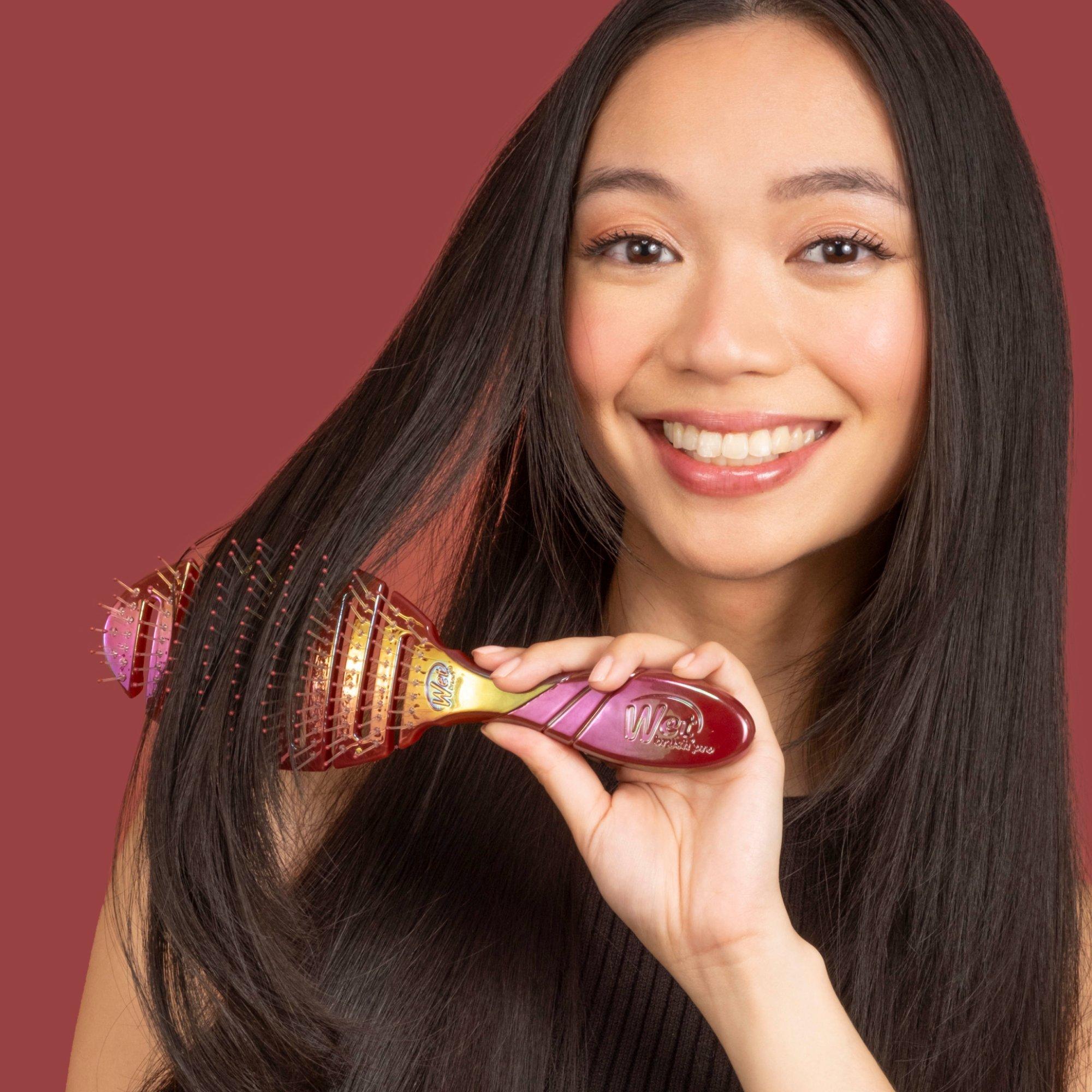 Meet Wet Brush's Iridescence Icon Pro Flex Dry. The innovative way to cut your drying time. Pro Flex Dry's flexible vented design speeds dry time, while contouring to the scalp for comfort.