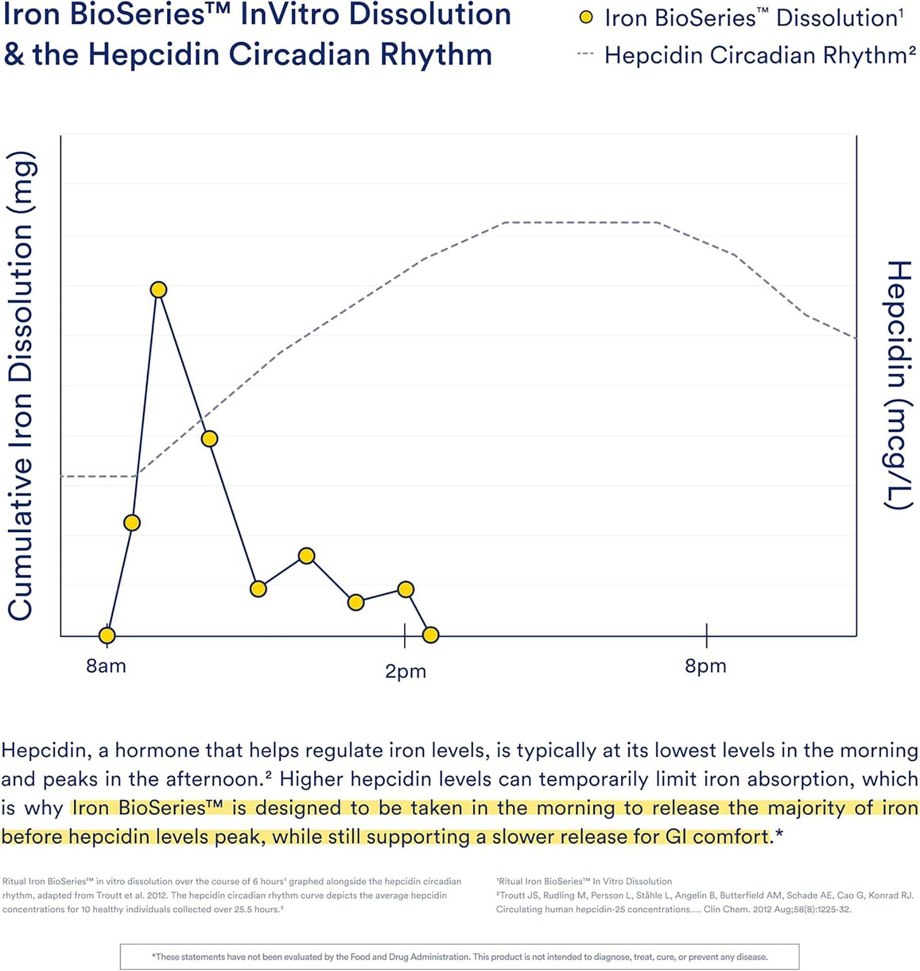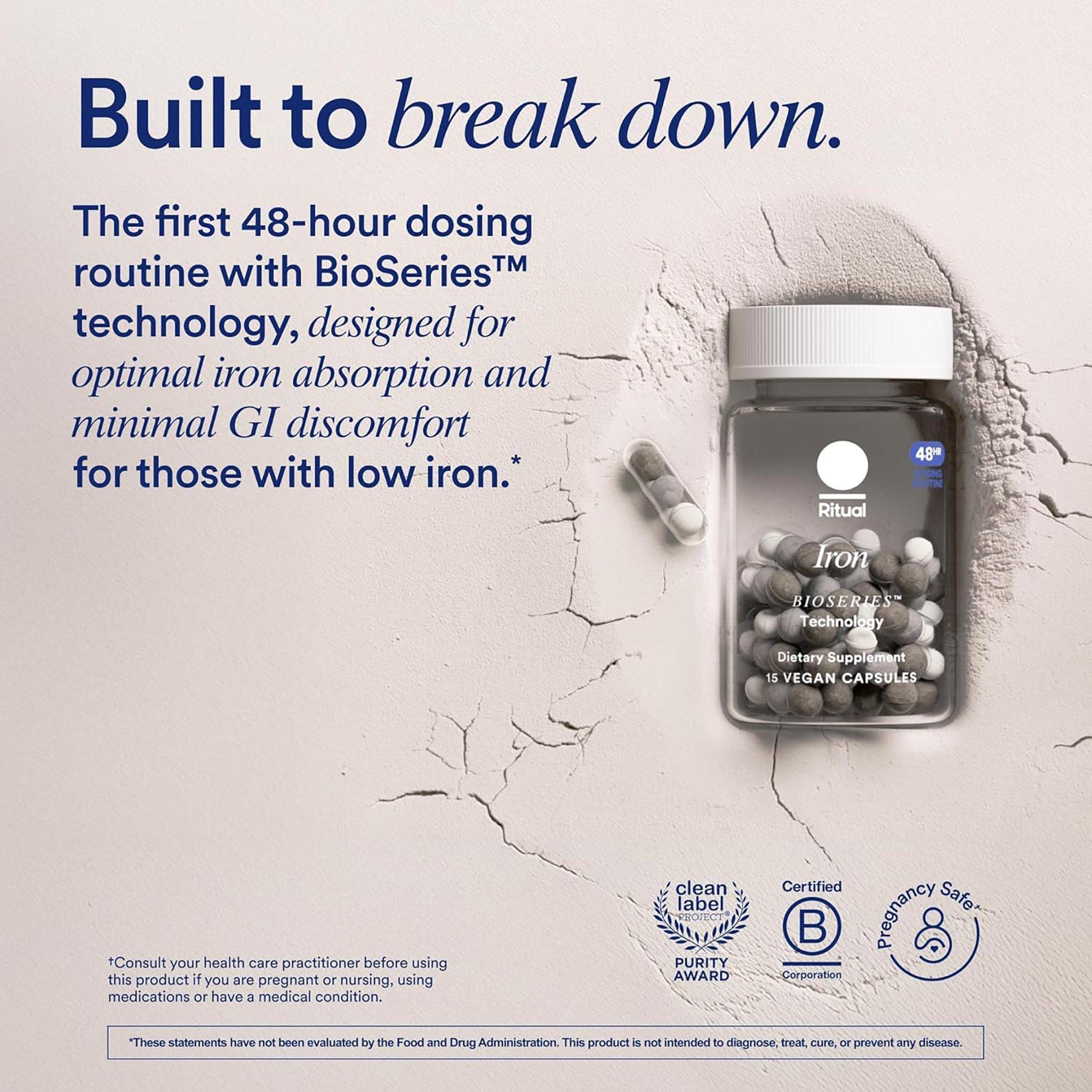 Ritual Iron Supplement to Support Low Iron Levels 60 mg | 48-hour Dosing Routine with BioSeriesTM Technology plus Vitamin A and C.