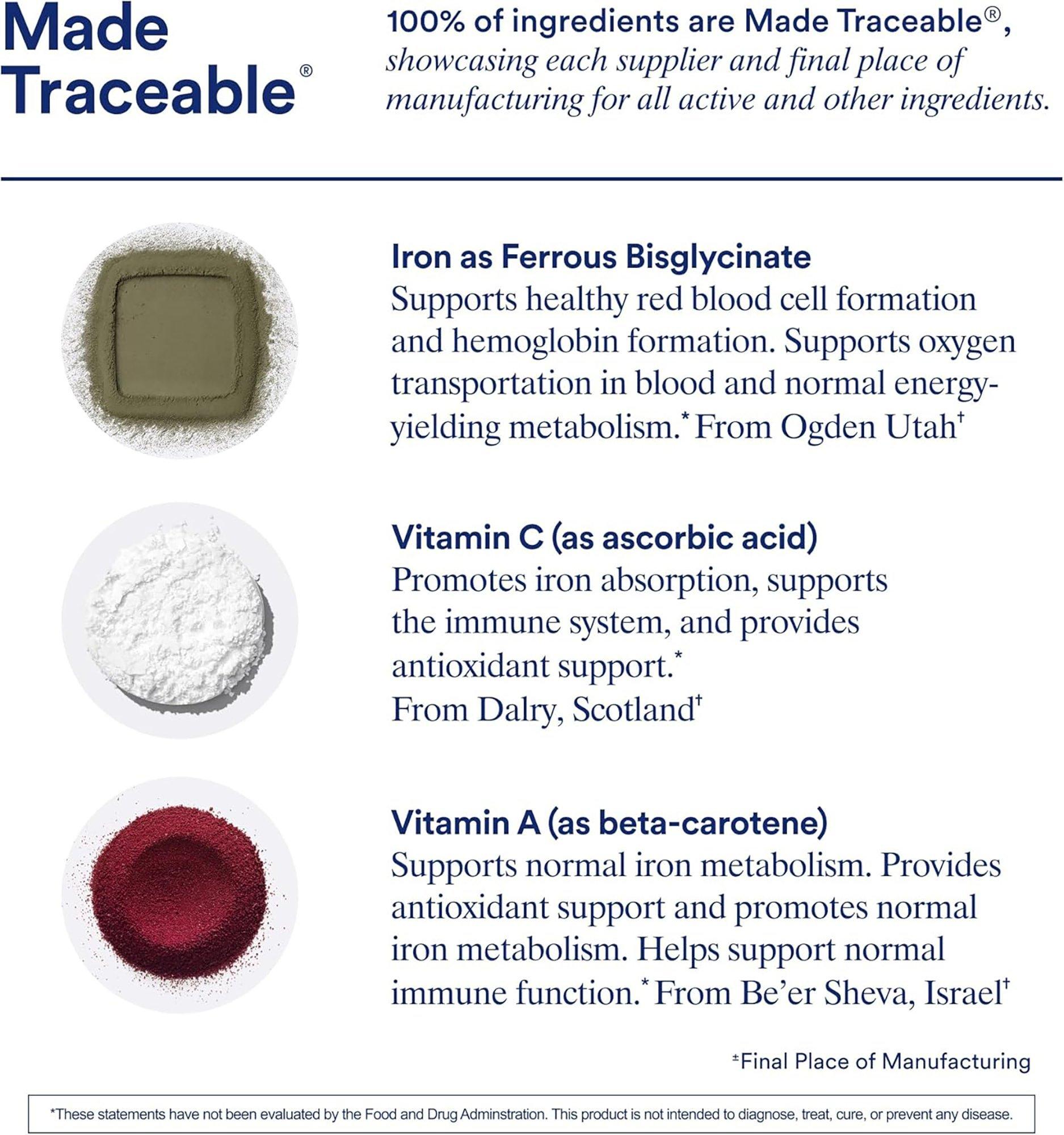 • Designed with bioavailable ferrous bisglycinate to support iron levels.*