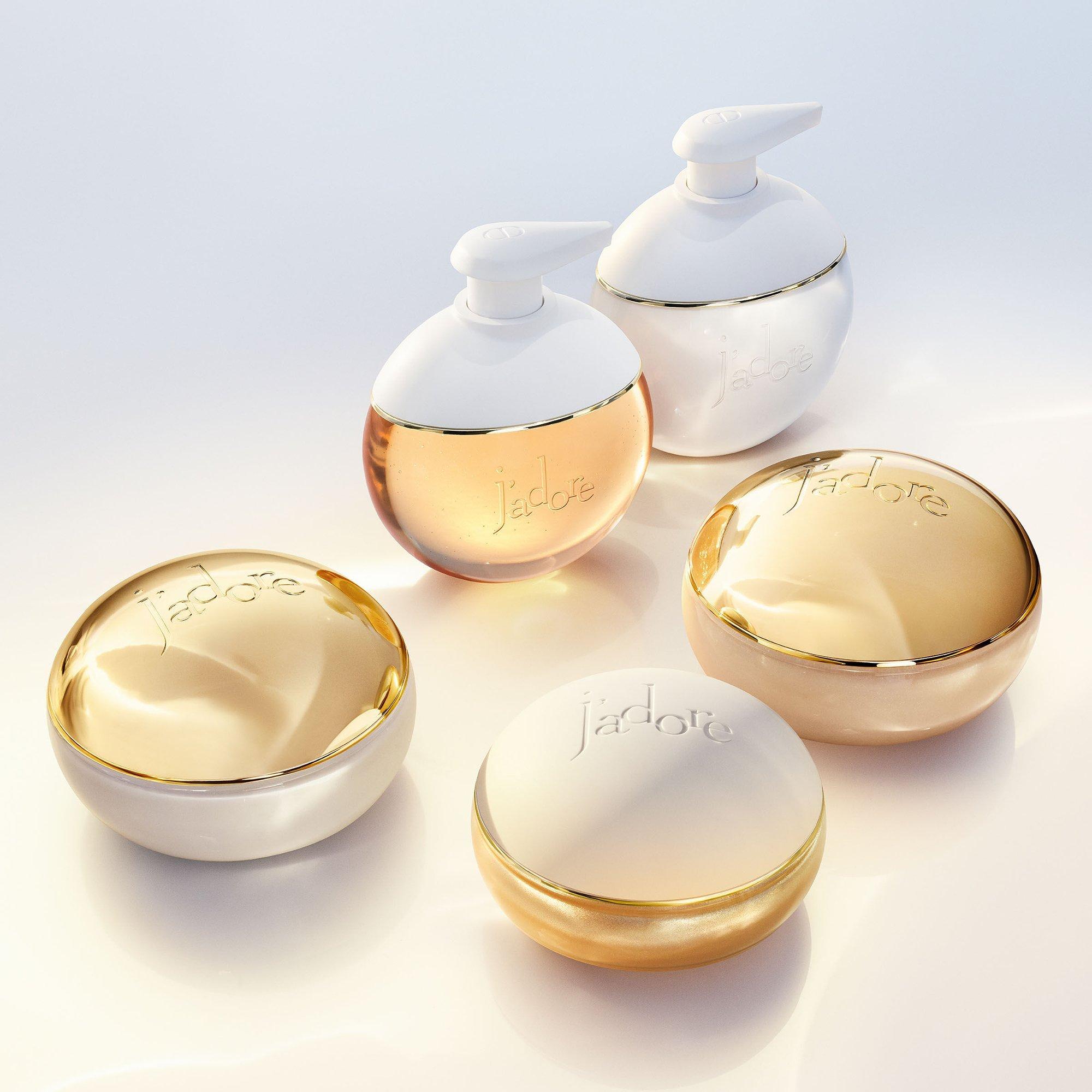 • The ultra-sensorial texture melts onto the skin, leaving it scented all day with the fresh, floral notes of J'adore perfume for women and shimmering with 24k gold particles and pearlescent pigments.