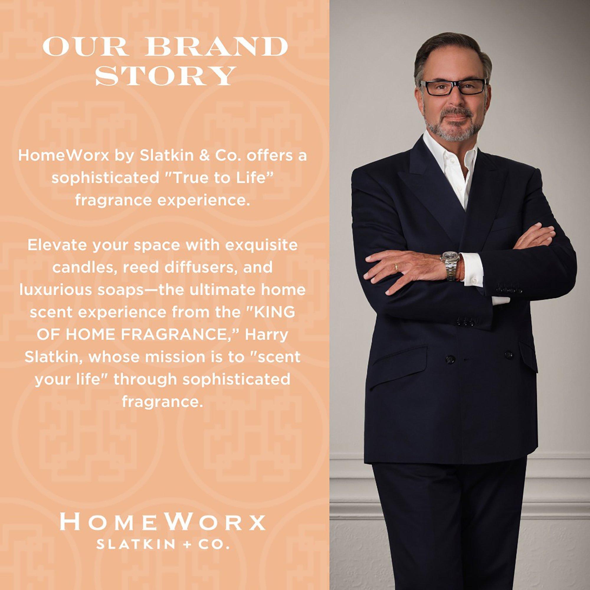 HomeWorx by Harry Slatkin Jasmine & White Peach 3-Wick Scented Candle fills your home with the finest luxury fragrance ambiance.