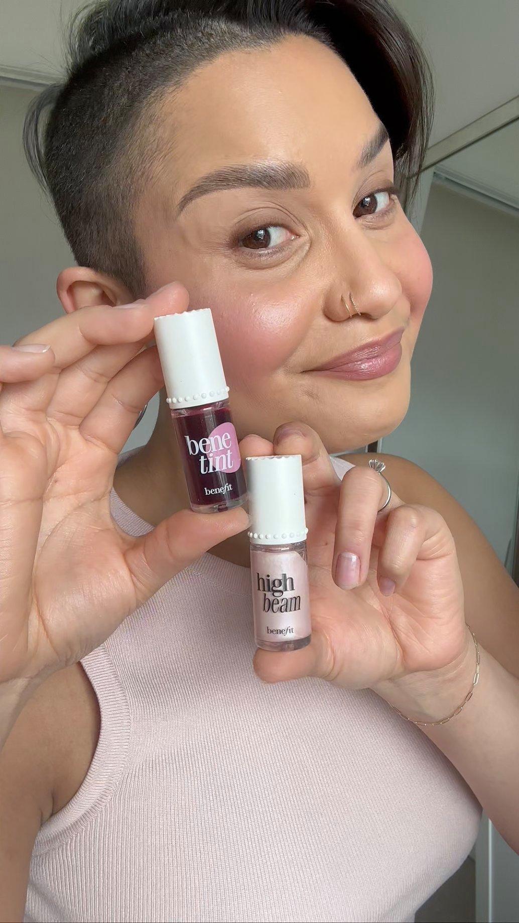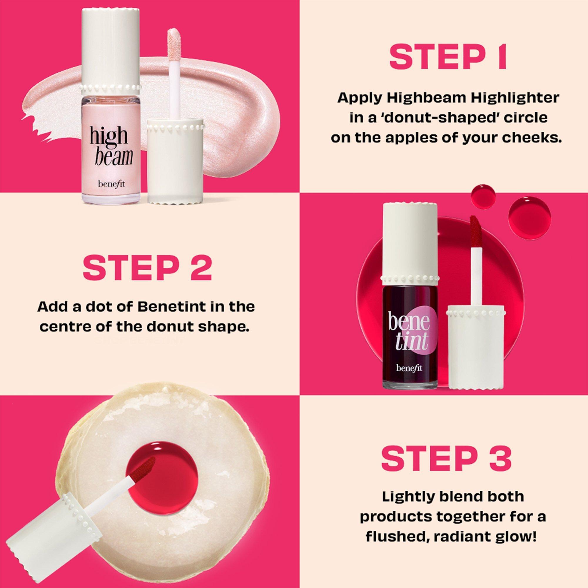 Benefit's Jelly Donut Bundle features full-size Benetint Liquid Lip & Cheek Stain and High Beam Satin Pink Liquid Highlighter. This limited-edition bundle will make it so easy to create the perfect rosy flush.