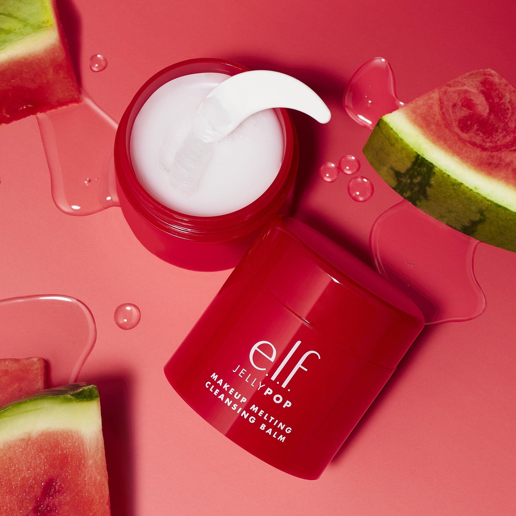 Melt away makeup with e.l.f. Cosmetics Jelly Pop Makeup Melting Cleansing Balm, featuring the one-in-a-melon scent you e.l.f.ing love. This luxe solid makeup remover cleansing balm transforms into a milky oil that rinses off clean, easily removing makeup and leaving your skin feeling silky smooth.