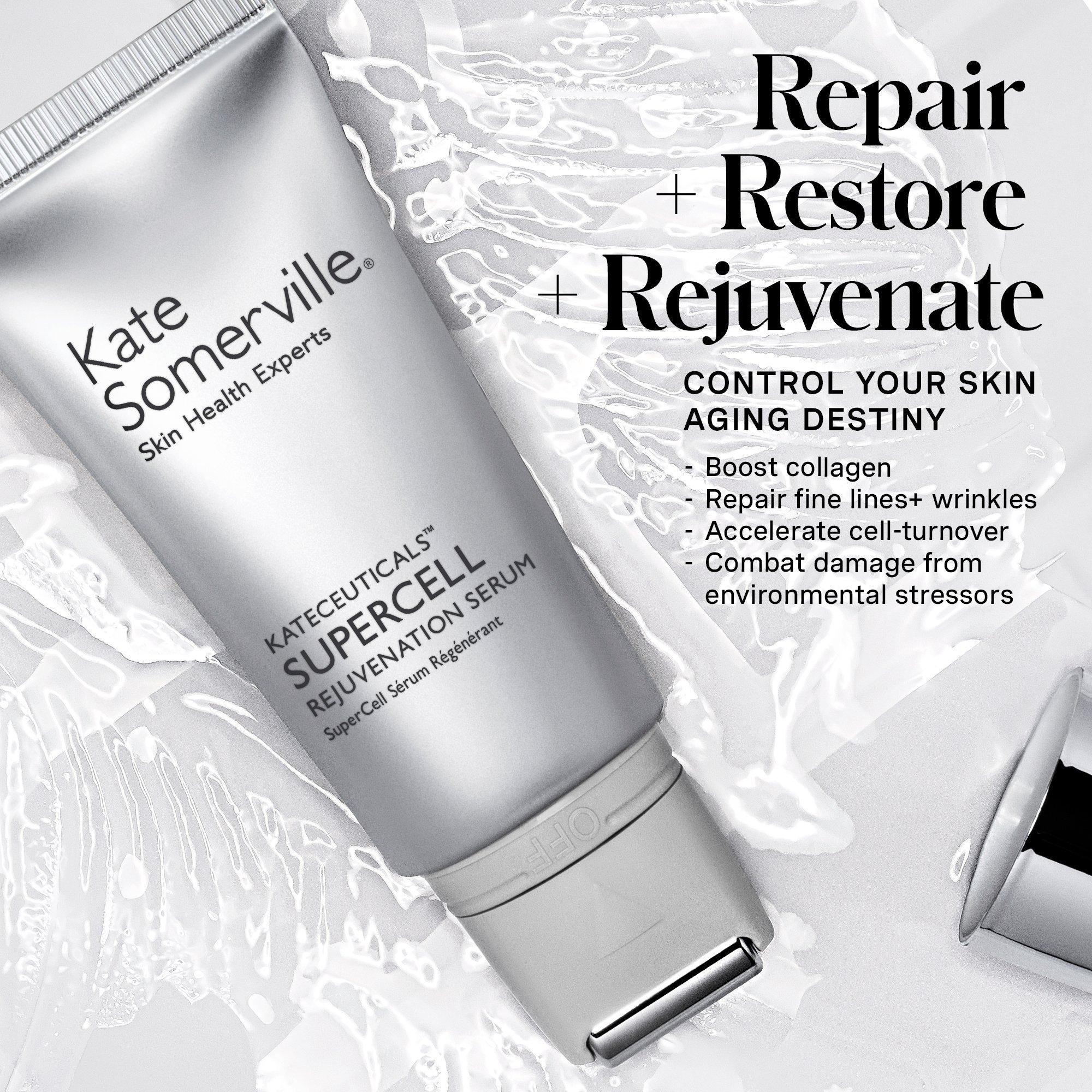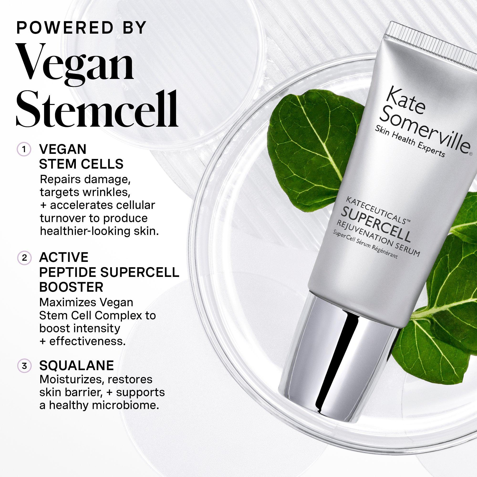 Kate Somerville's SuperCell Rejuvenation Serum will have everyone asking for your secret. This powerhouse of vegan stem cells and active peptides accelerates cellular turnover, delivering fresh-from-the-clinic results in the comfort of your home.