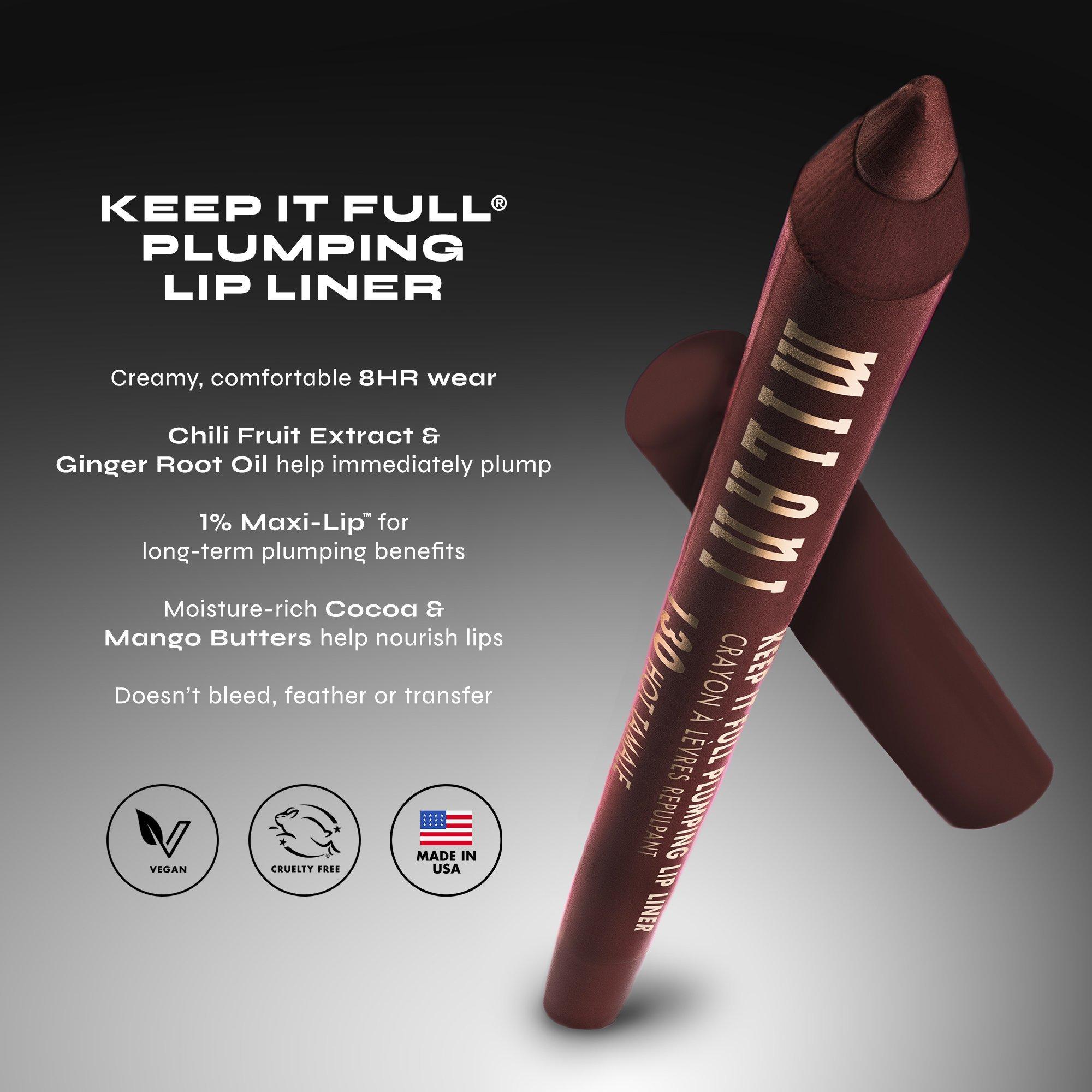 Milani Keep It Full Plumping Lip Liner is a richly pigmented, creamy lip liner with 8-Hour Wear that delivers immediate plumping with a spicy tingle.
