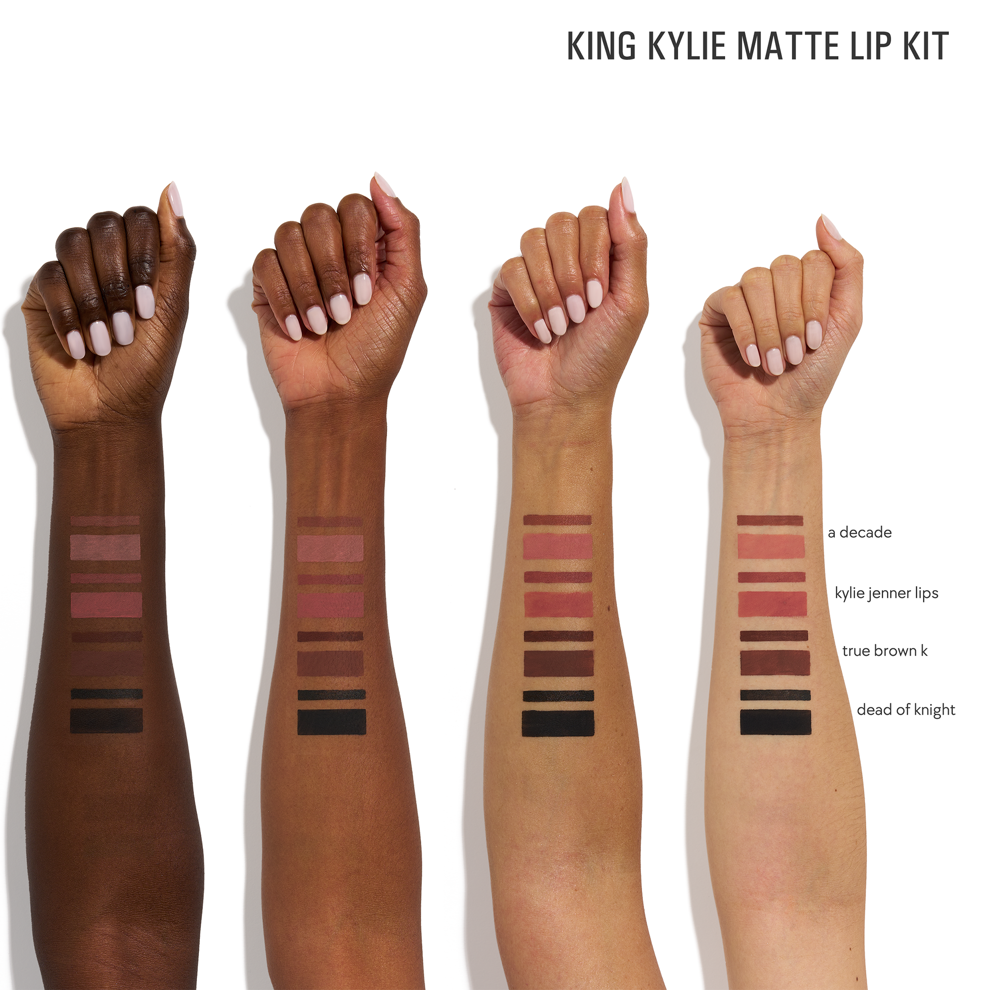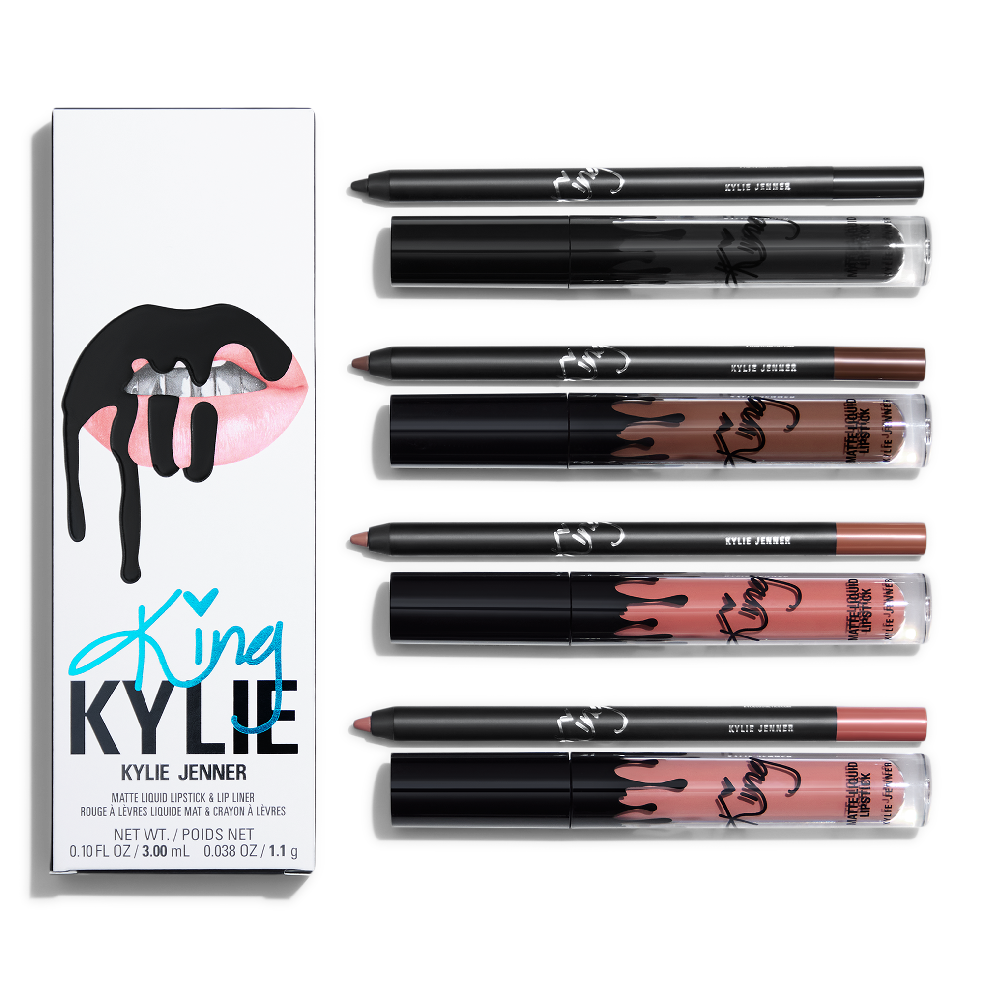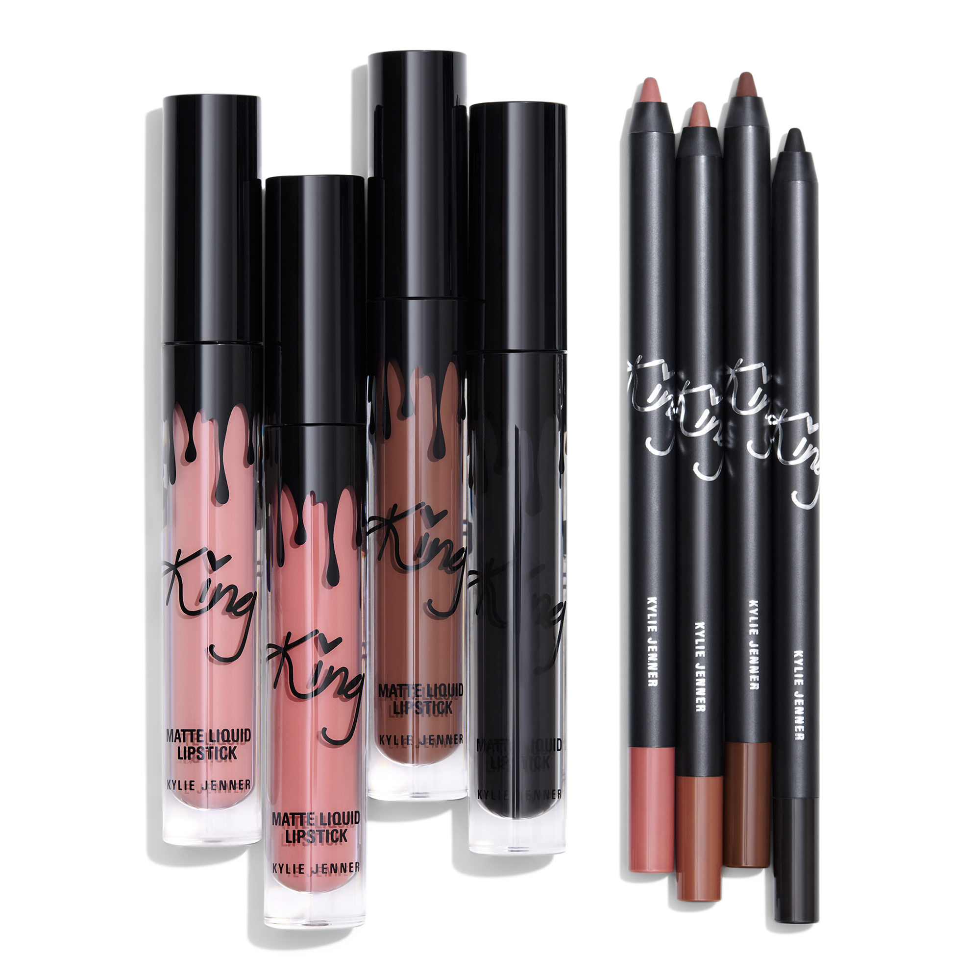 The King Kylie Collection 2-Piece Matte Lip Kit is your ready-to-go routine for a matte lip that lasts all day. Featuring 4 limited-edition shades, this lipstick and lip liner duo offers highly pigmented color.