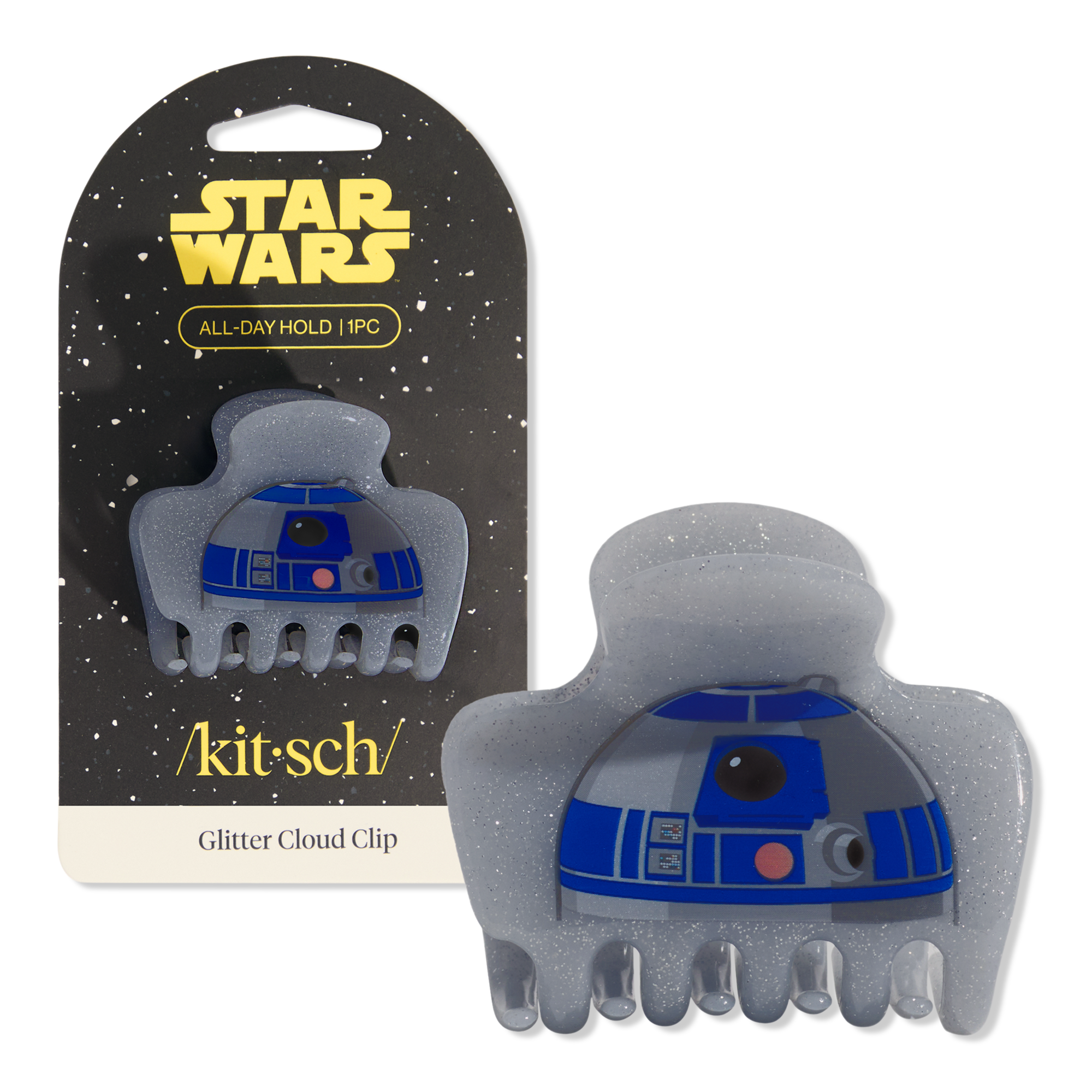 The Kitsch x Star Wars Glitter Cloud Clip holds your hair with ease while adding a touch of intergalactic glam. Perfect for every day or party-ready styles.