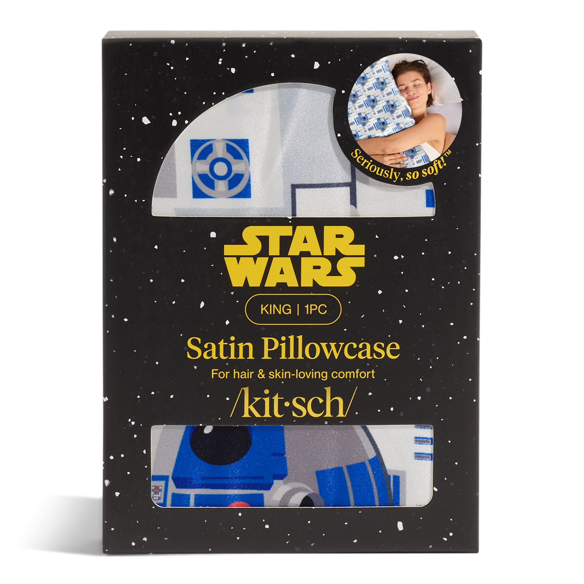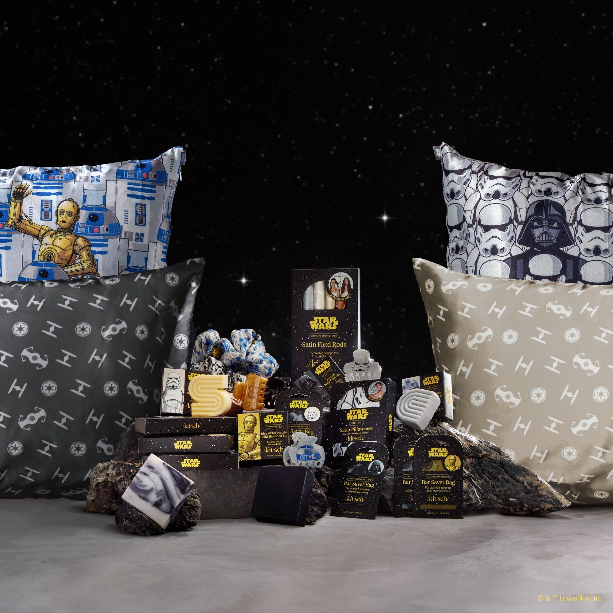 Rule the night with this Kitsch x Star Wars King Satin Pillowcase. Crafted from smooth satin to help protect hair and skin, it lets you drift to the dark side in comfort—because even Sith Lords deserve flawless beauty sleep.