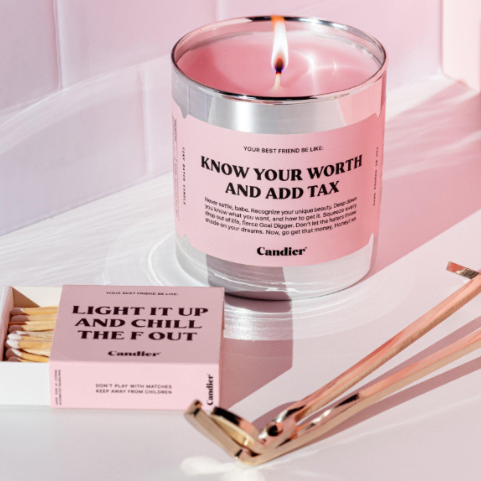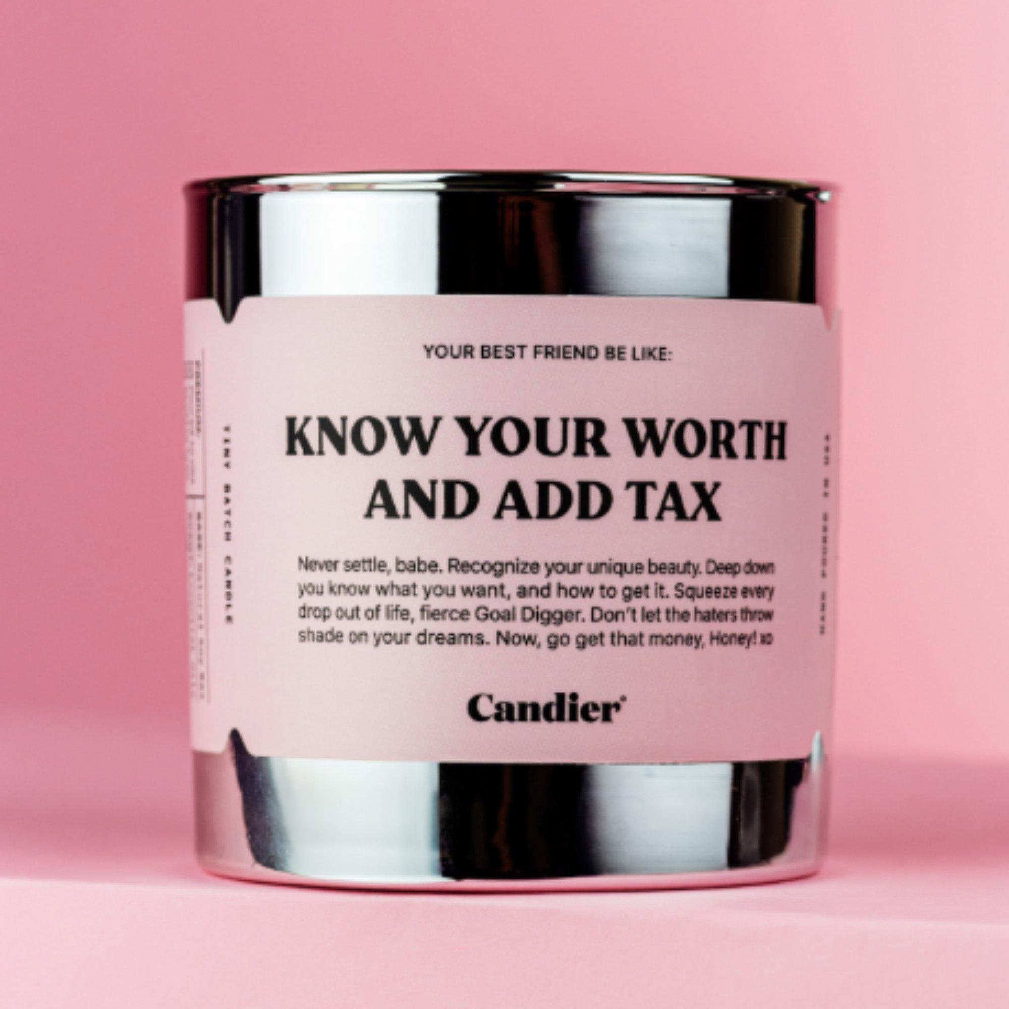 Candier Know Your Worth And Add Tax Candle