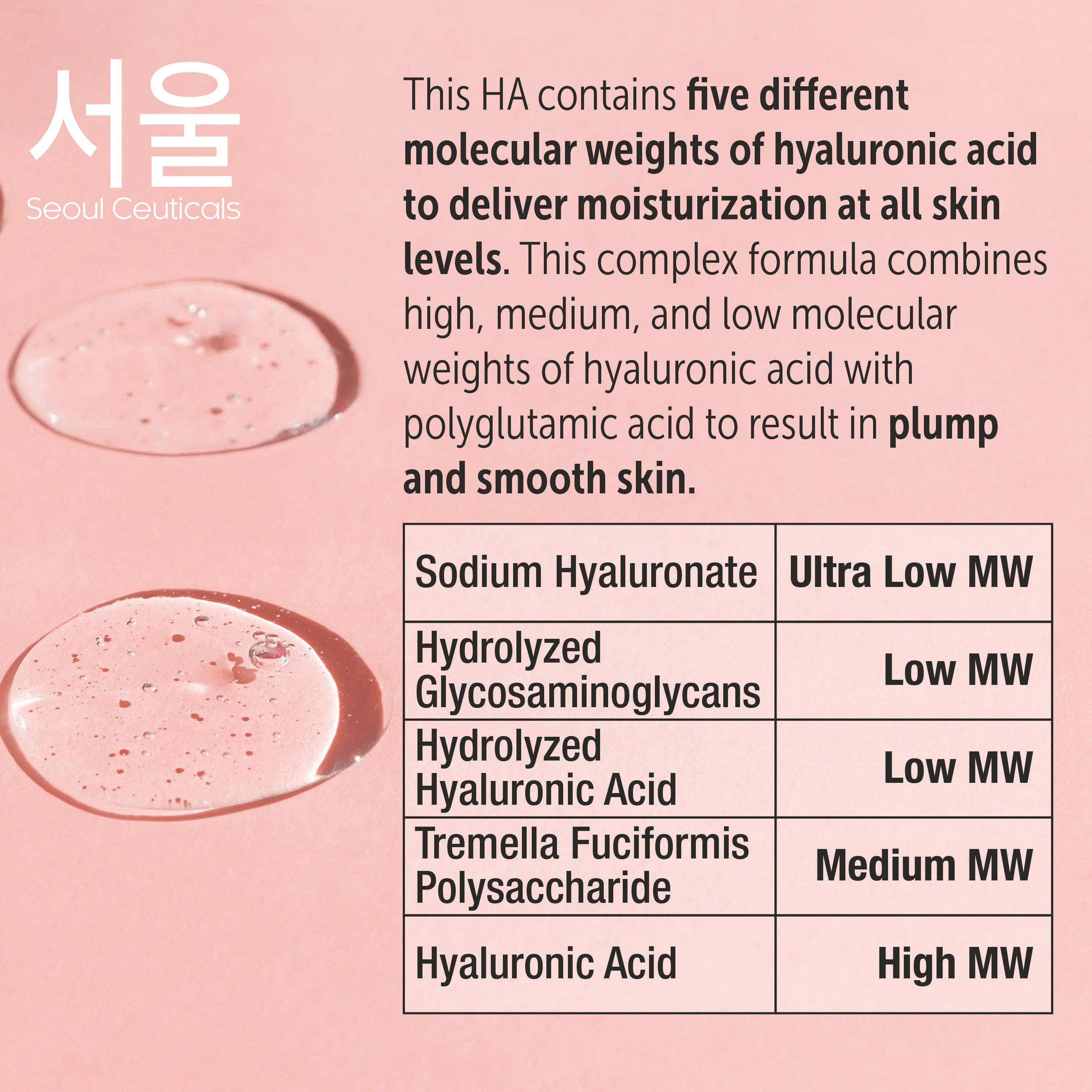 Discover a better Korean Hyaluronic Acid Serum. Our Mixed Molecular Weight Hyaluronic Acid Serum is more effective than the standard HA serum which only contains a high molecular weight Hyaluronic Acid.